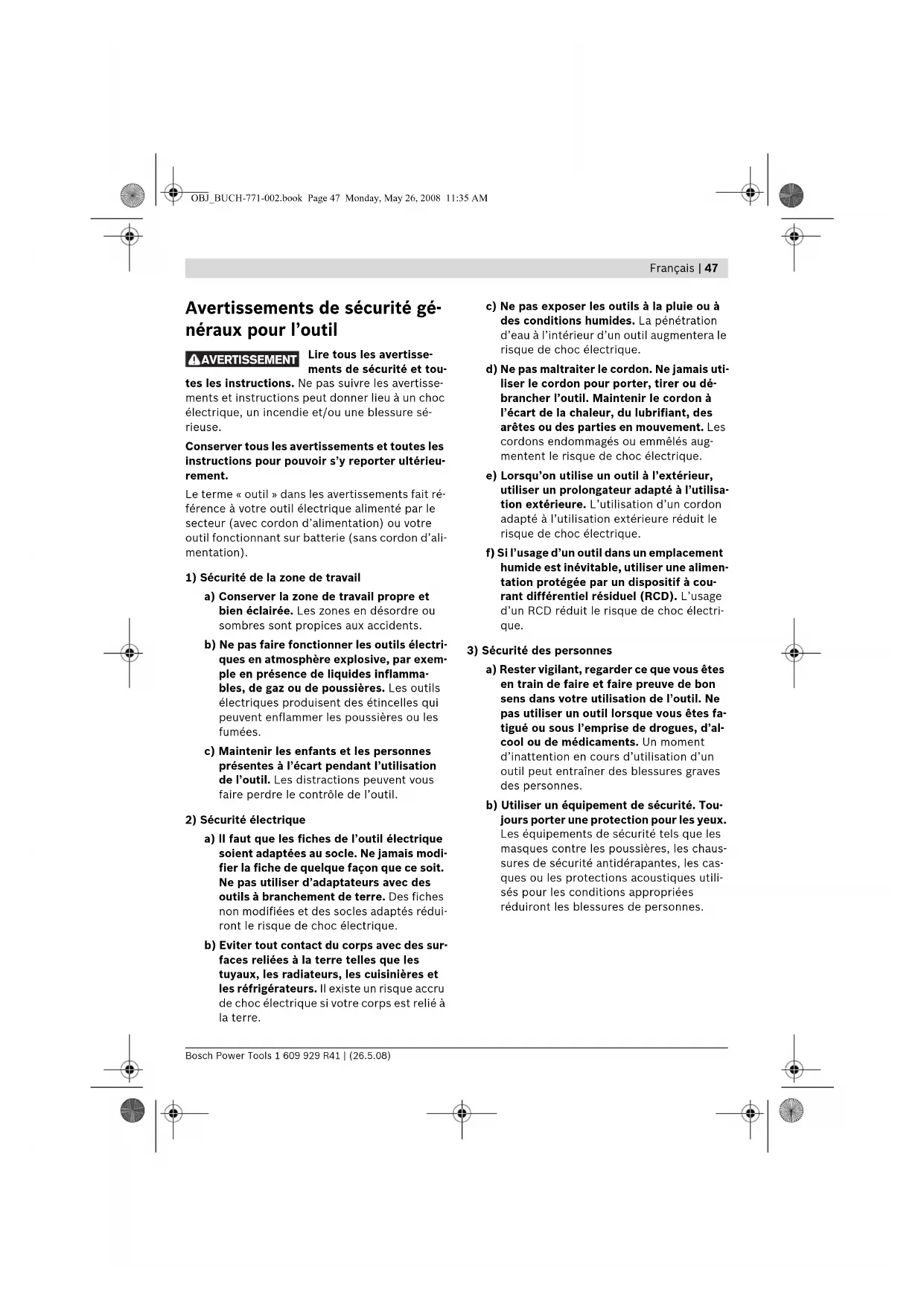 AVERTISSEMENT OBJ_BUCH-771-002.book Page 47 Monday, May 26, 2008 11:35 AM1 609 929 R41 | (26.5.08) Bosch Power Tools