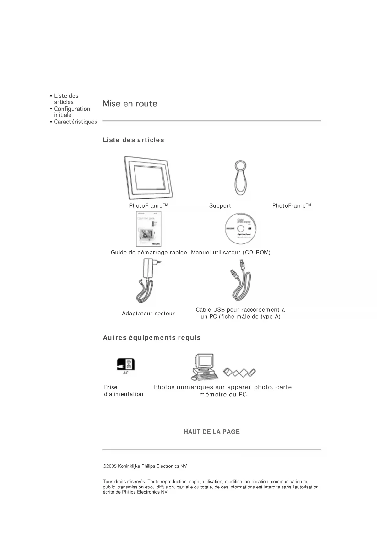 ©2005 Koninklijke Philips Electronics NV Tous droits réservés. Toute reproduction, copie, utilisation, modification, location, communication au public, transmission et/ou diffusion, partielle ou totale, de ces informations est interdite sans l'autorisation écrite de Philips Electronics NV.• Contenuto della confezione