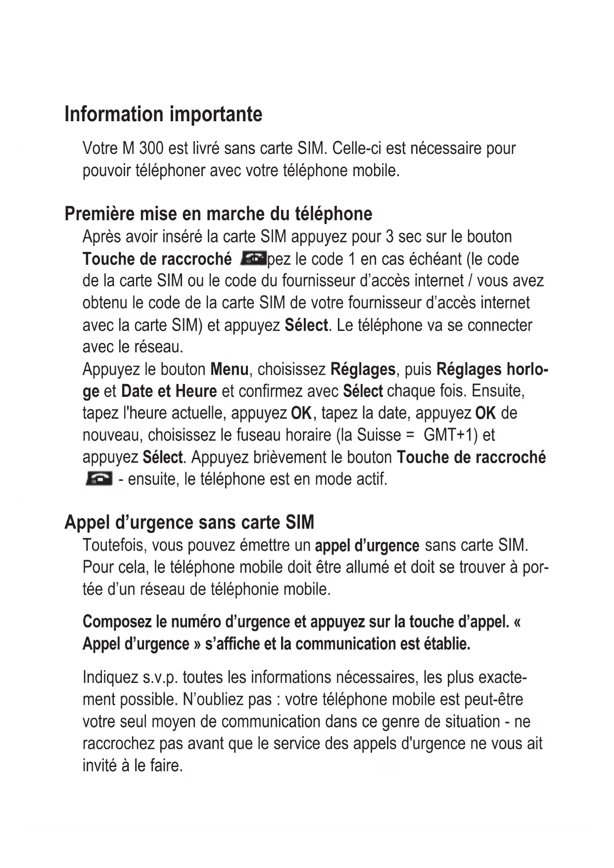 Votre M 300 est livré sans carte SIM. Celle-ci est nécessaire pour pouvoir téléphoner avec votre téléphone mobile.