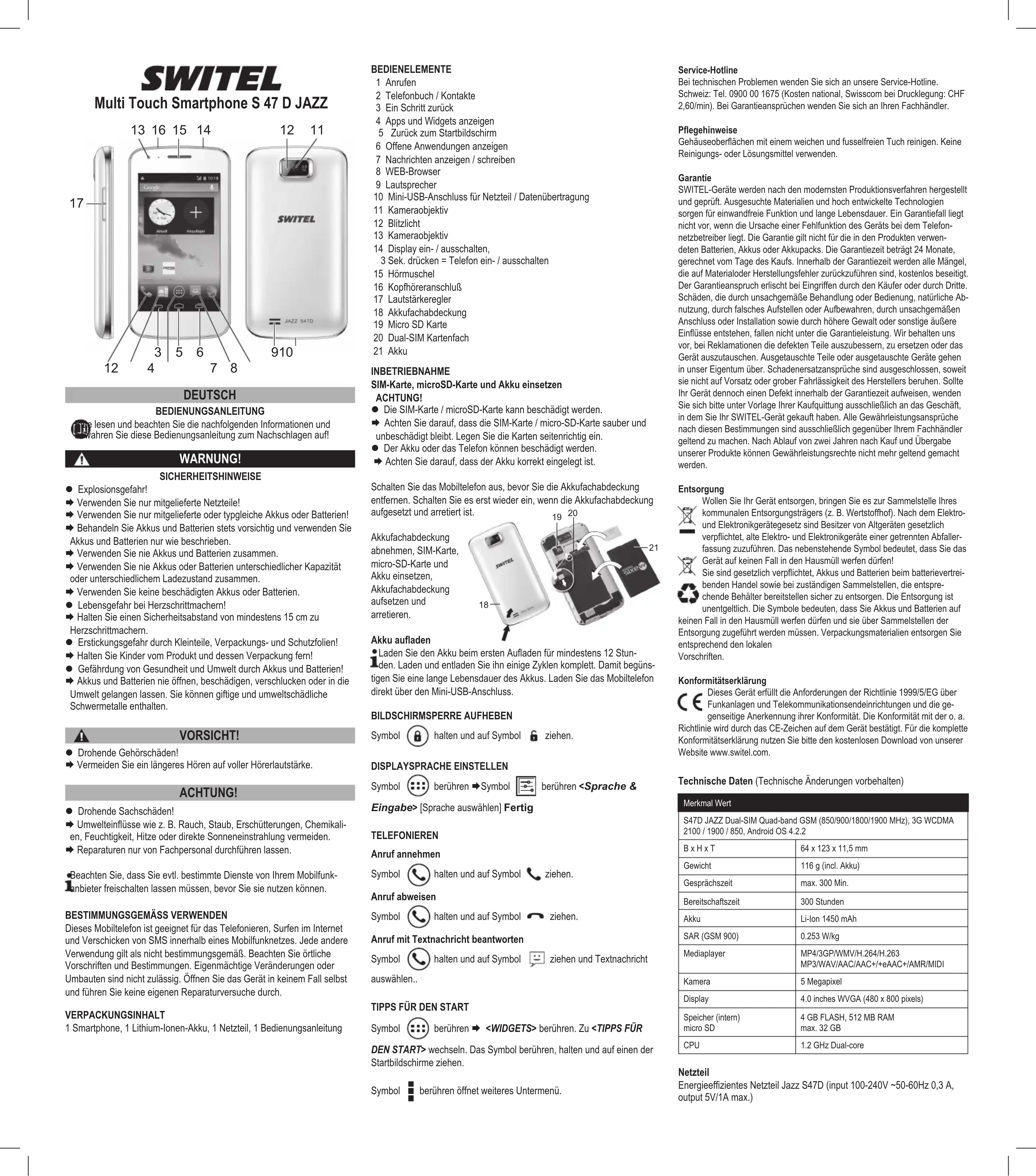 S47D Jazz - Smartphone SWITEL - Notice d'utilisation et mode d'emploi gratuit
