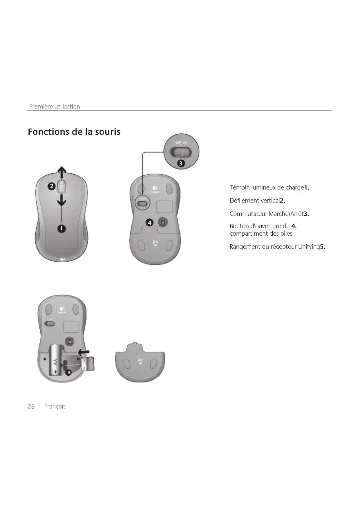 Rangement du récepteur Unifying5.