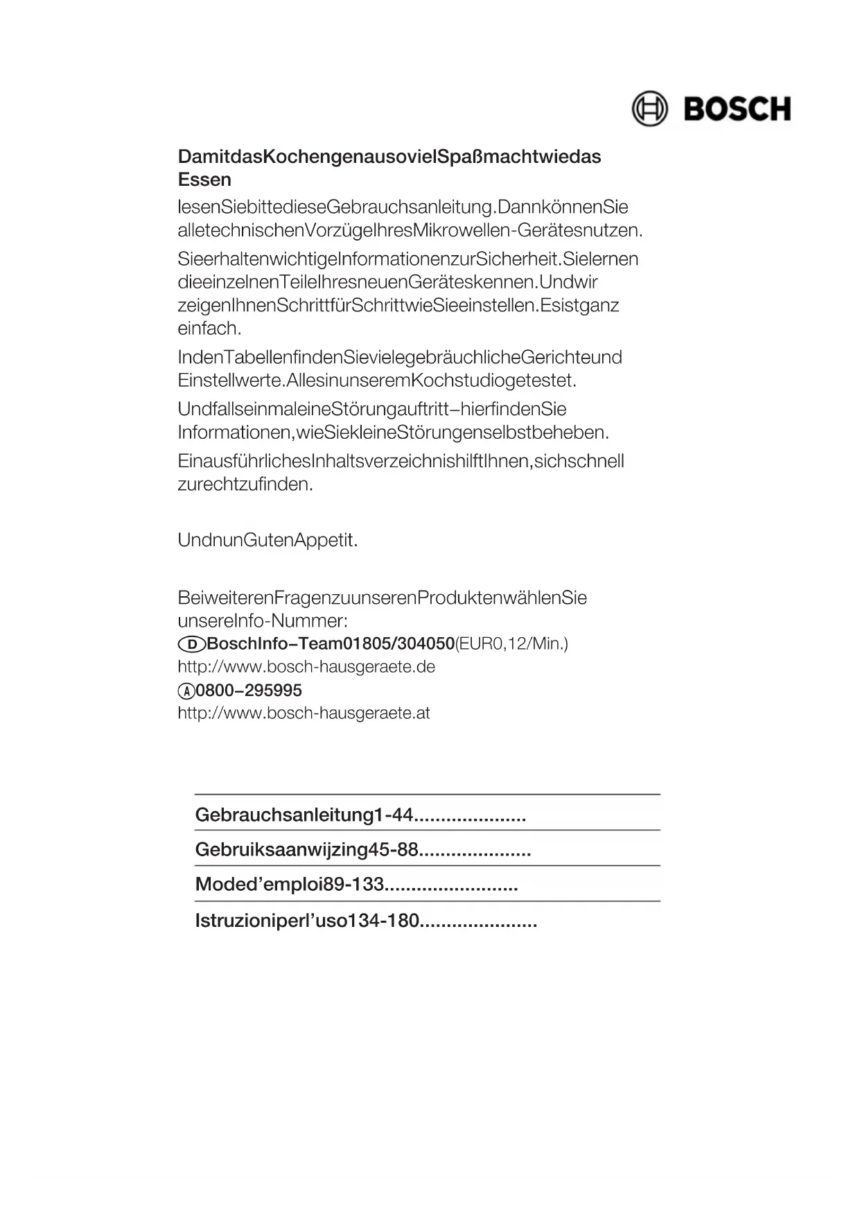 HMT85G650 - Four à micro-ondes BOSCH - Notice d'utilisation et mode d'emploi gratuit