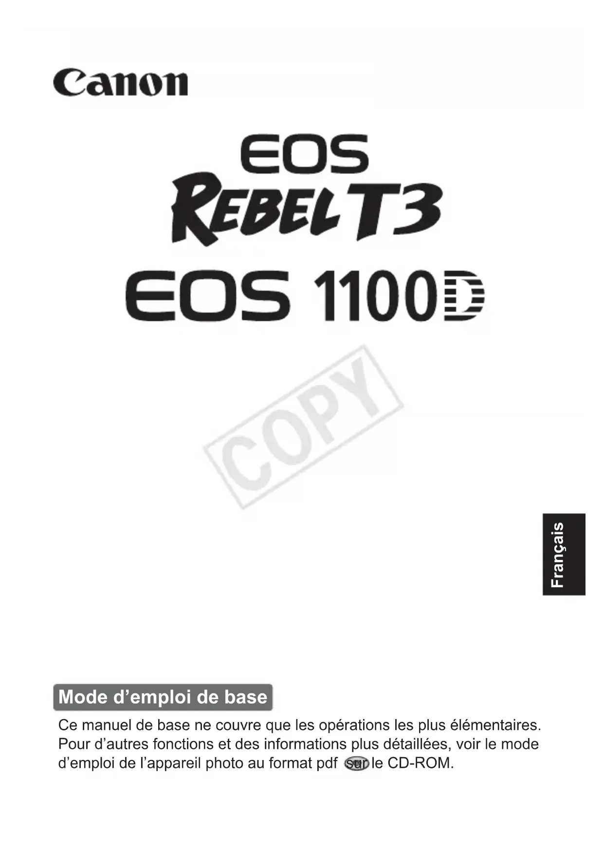 Les modes d’emploi de l’EOS REBEL T3/EOS 1100D comprennent les