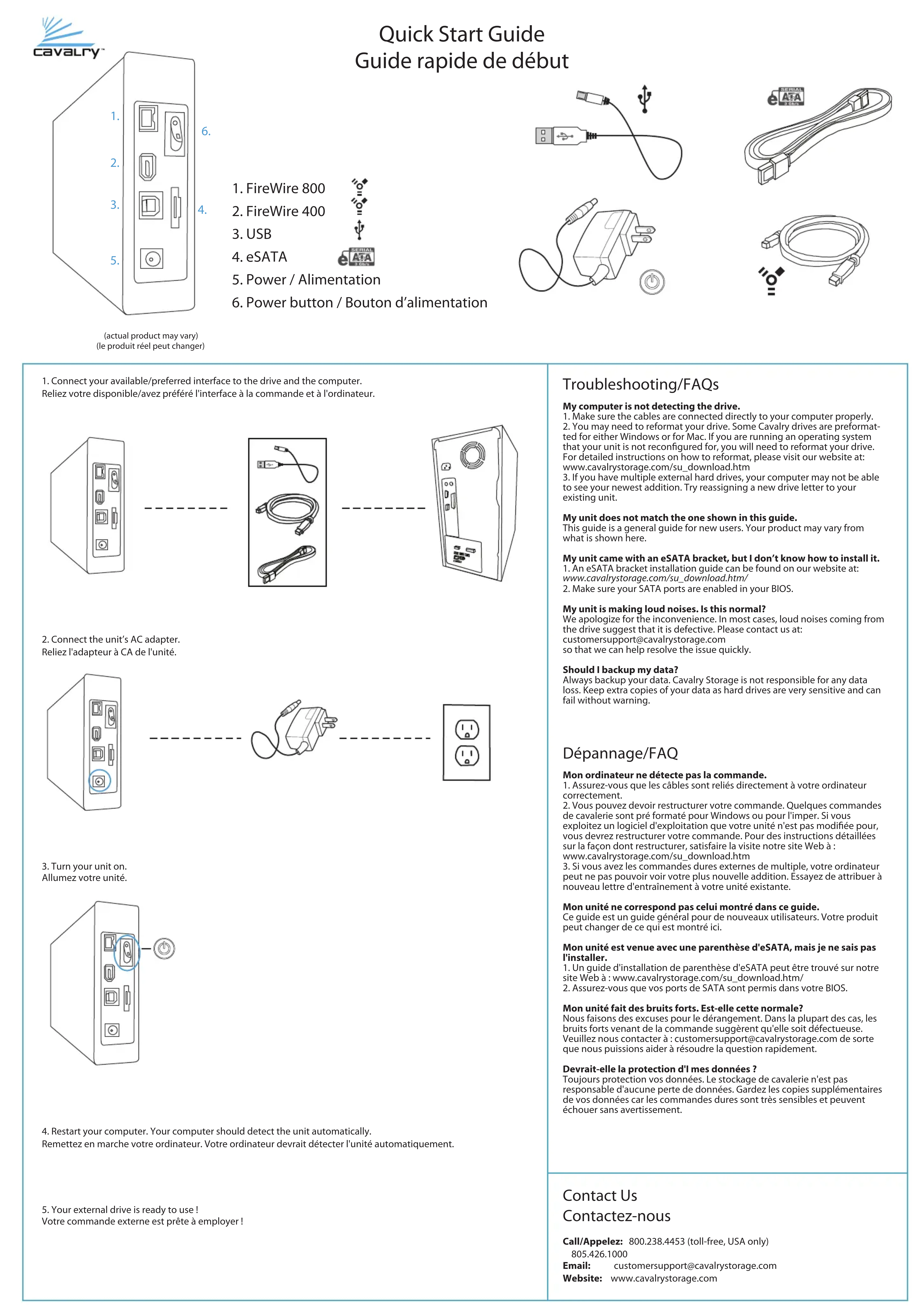 - Un guide d'installation de parenthèse d'eSATA peut être trouvé sur notre site Web à : www.cavalrystorage.com/su_download.htm/