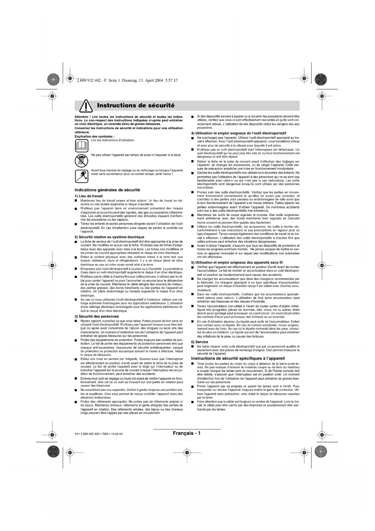 2 609 932 402 - GB Seite 5 Dienstag, 13. April 2004 4:05 1615 • 2 609 932 402 • TMS • 13.04.04Français - 1 Attention ! Lire toutes les instructions de sécurité et toutes les indica-tions. Le non-respect des instructions indiquées ci-après peut entraînerun choc électrique, un incendie et/ou de graves blessures.Conserver les instructions de sécurité et indications pour une utilisationultérieure.Explication des symboles :