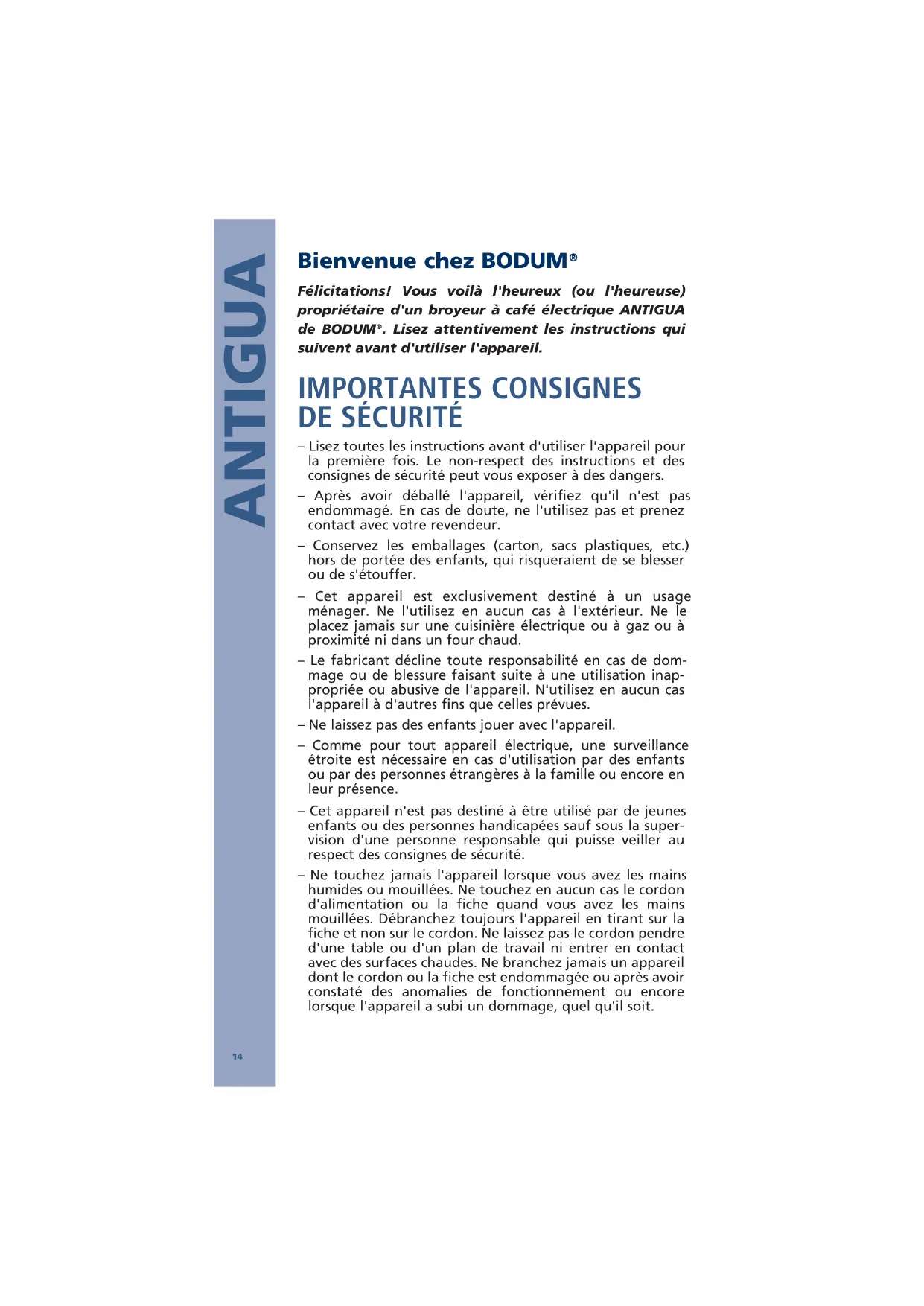 Retrouvez gratuitement la notice de l'appareil Antigua 10539 BODUM au format PDF.