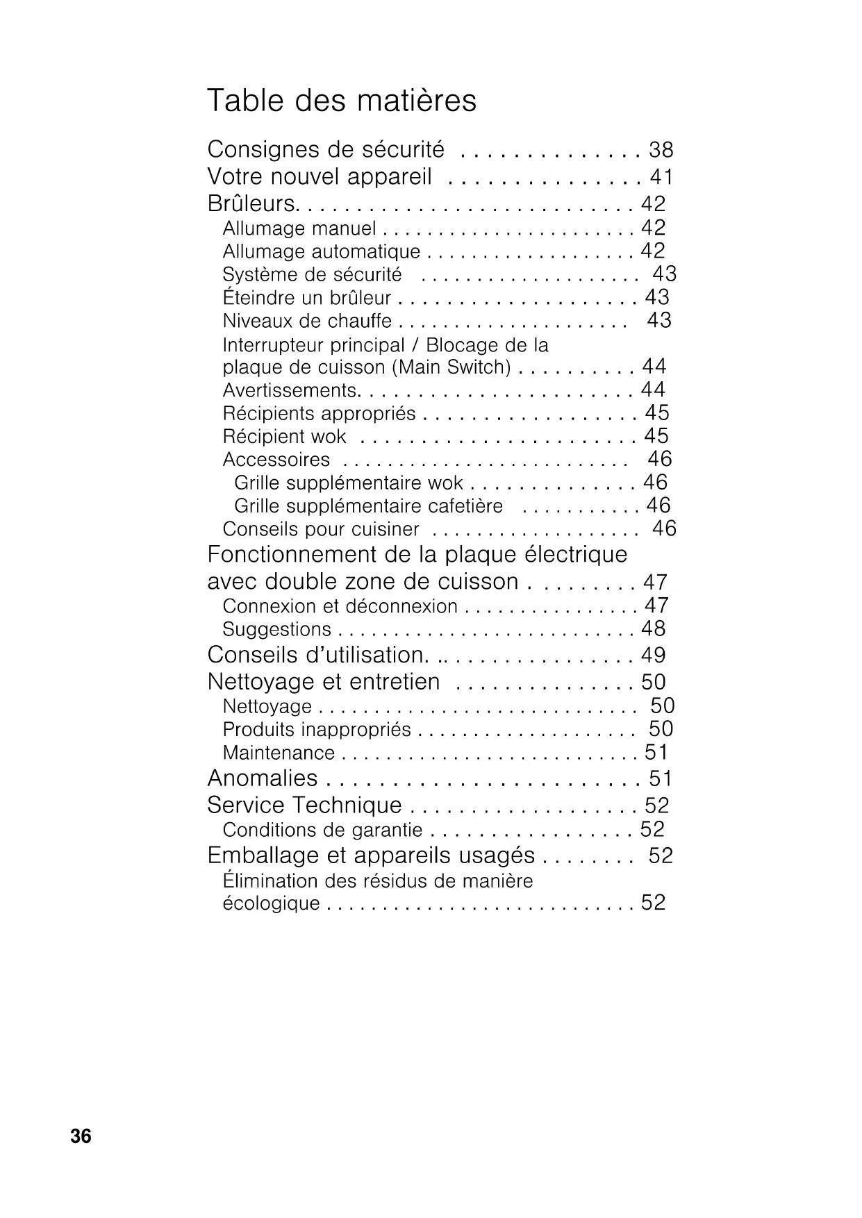 Grille supplémentaire wok . . . . . . . . . . . . . . 46