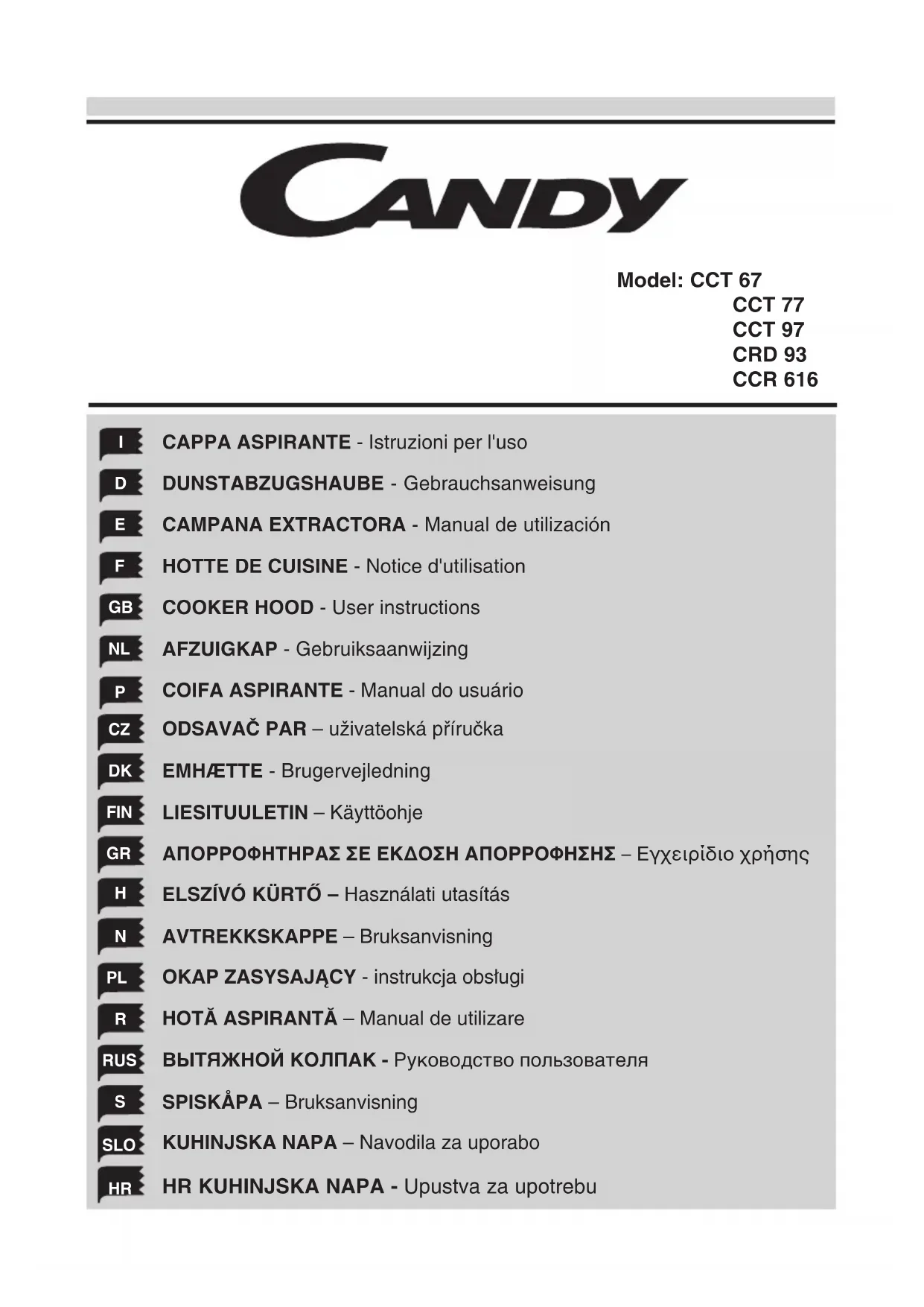 CRD 93 X - Hotte CANDY - Notice d'utilisation et mode d'emploi gratuit