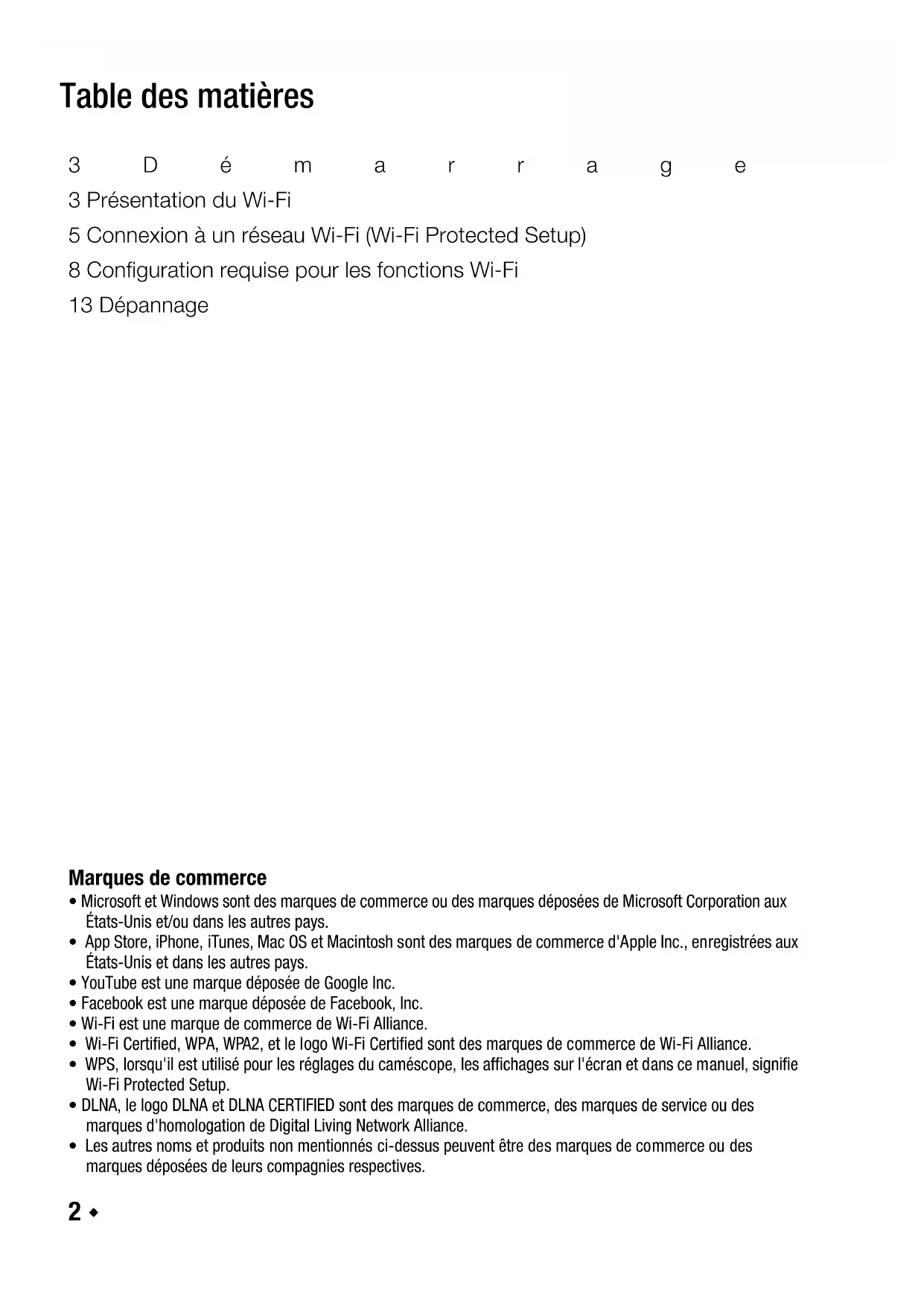 • DLNA, le logo DLNA et DLNA CERTIFIED sont des marques de commerce, des marques de service ou des