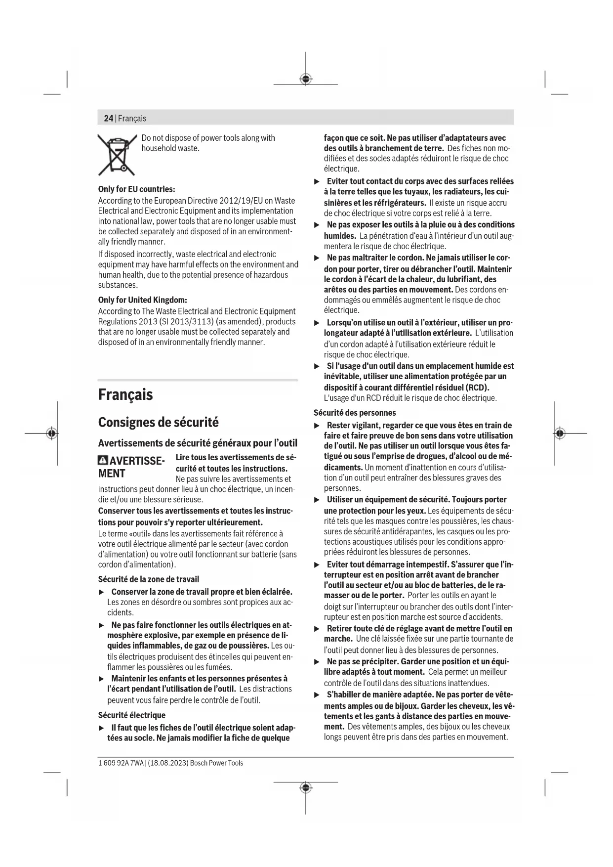 longs peuvent être pris dans des parties en mouvement. 1 609 92A 7WA | (18.08.2023) Bosch Power ToolsFrançais | 25