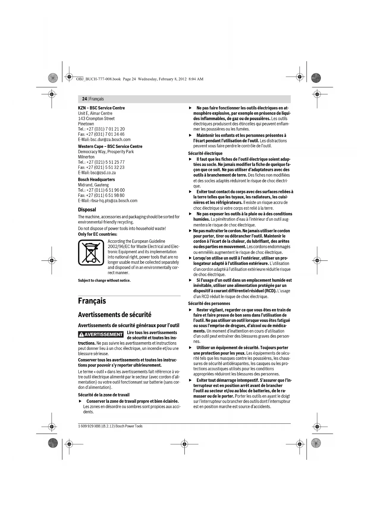 Bosch Power Tools 1 609 929 X88 | (8.2.12)