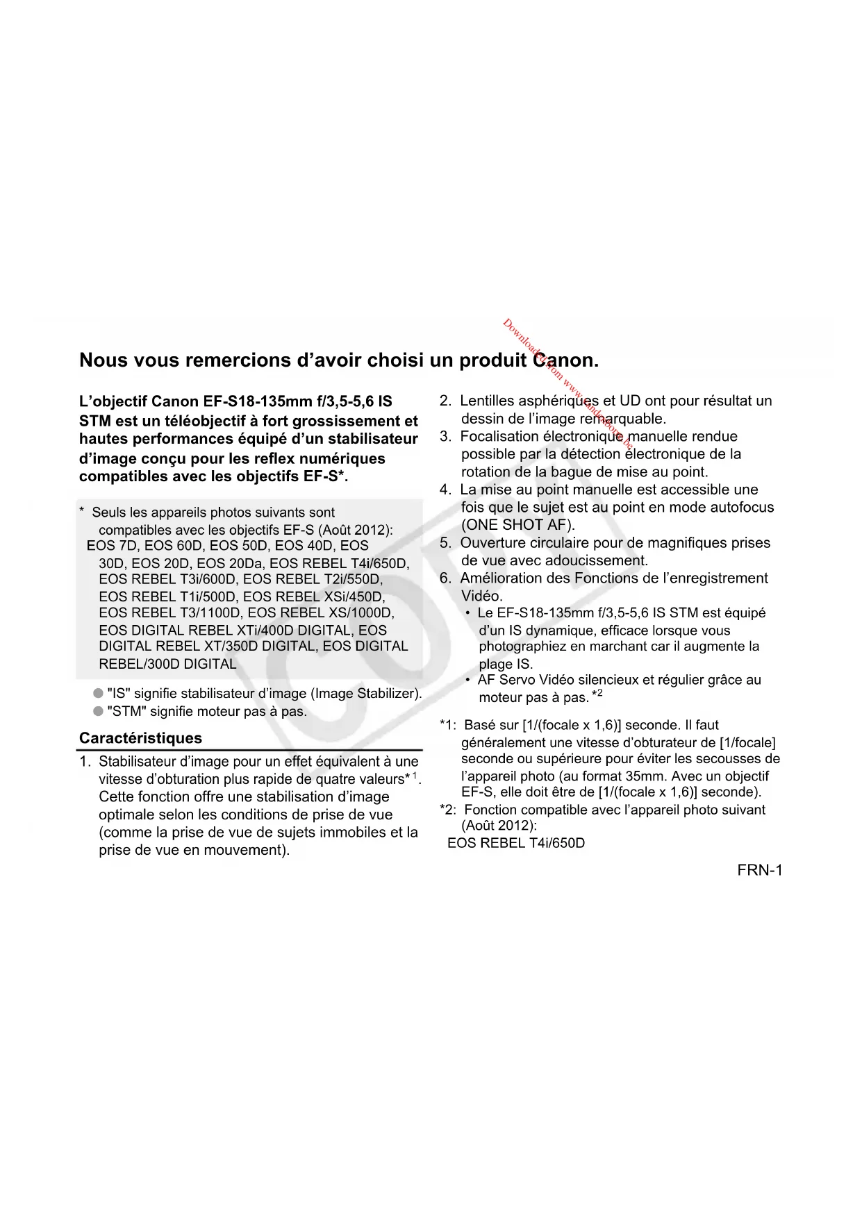 EFS 18135mm f3.55.6 IS STM - Objectif CANON - Notice d'utilisation et mode d'emploi gratuit