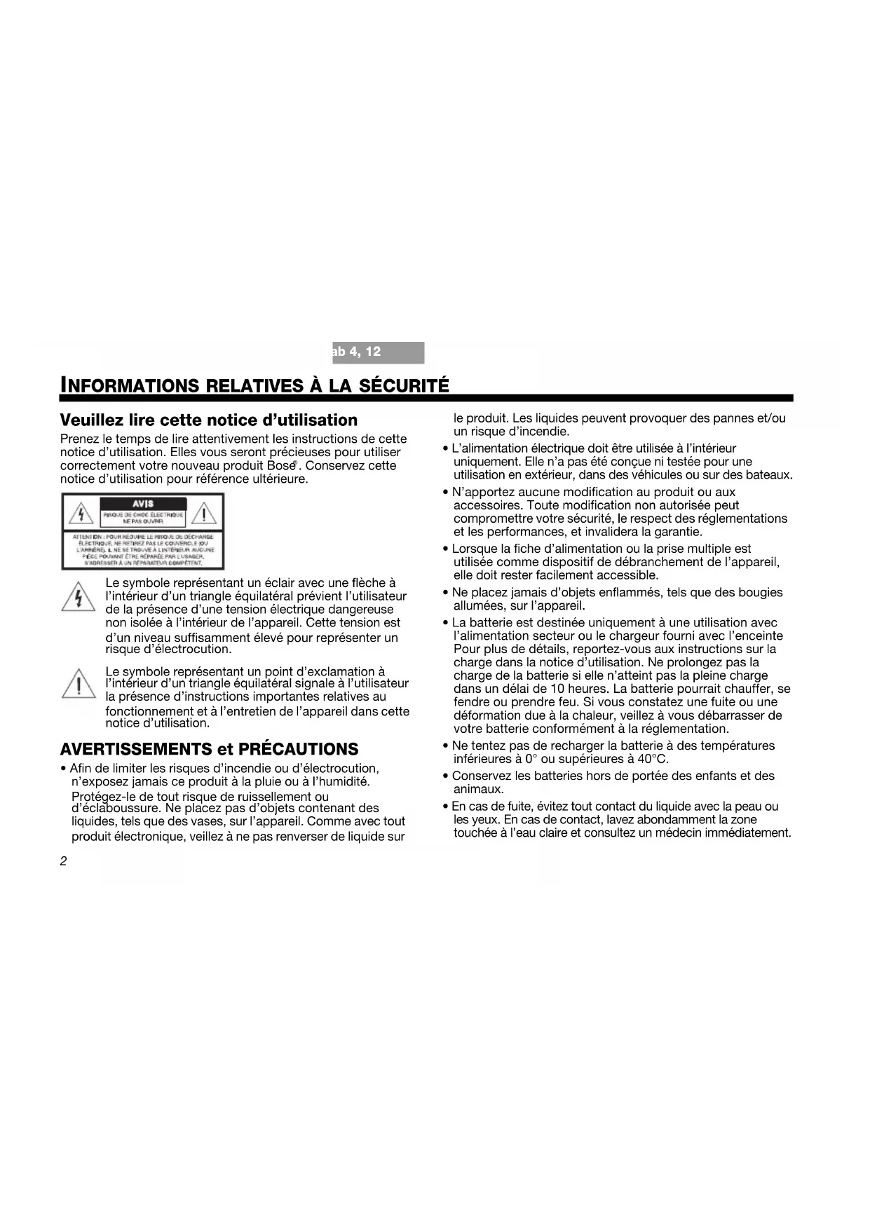 • Utilisez cette batterie exclusivement avec le produit Bose et