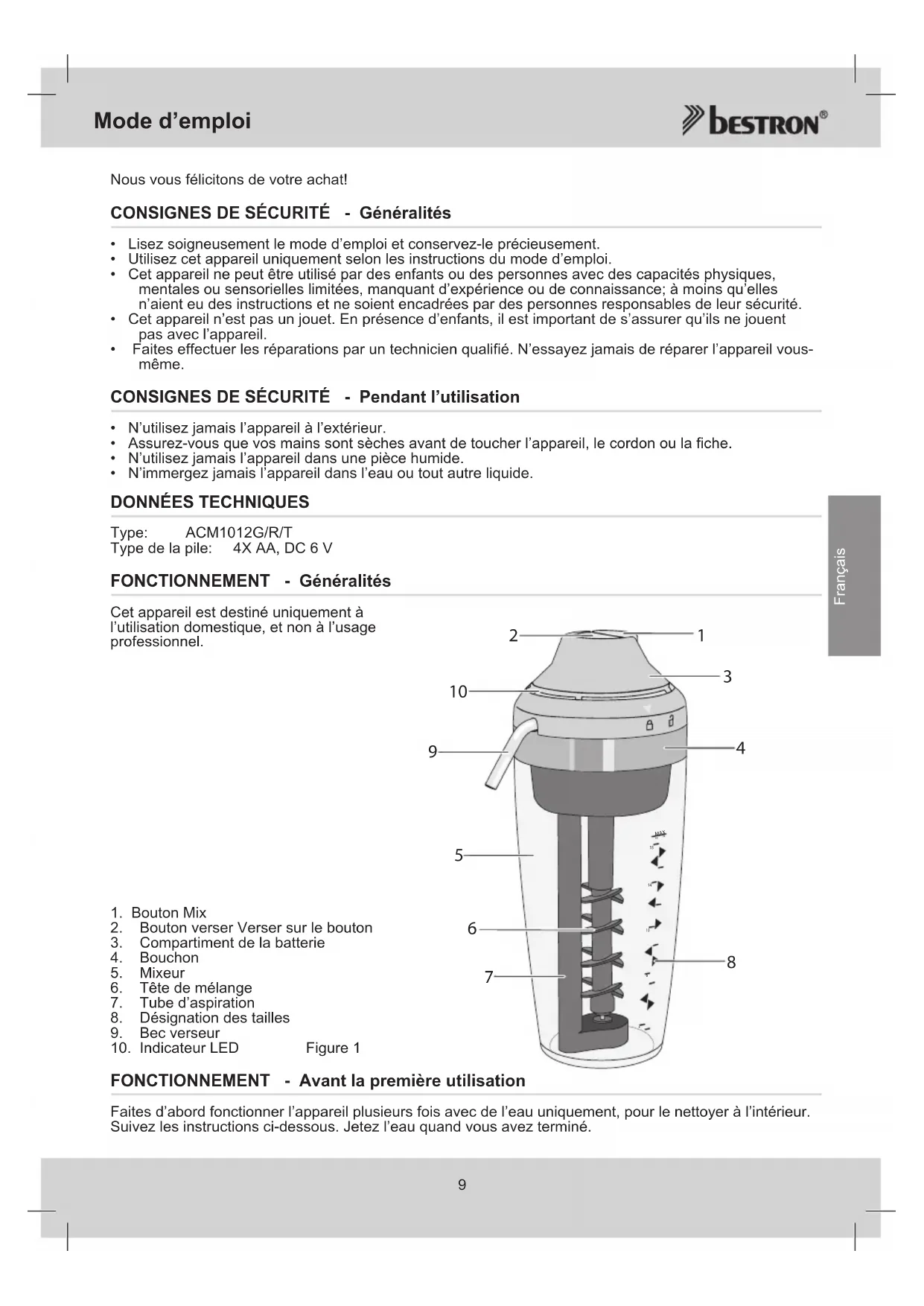 ACM1012G - Mixeur plongeant BESTRON - Notice d'utilisation et mode d'emploi gratuit