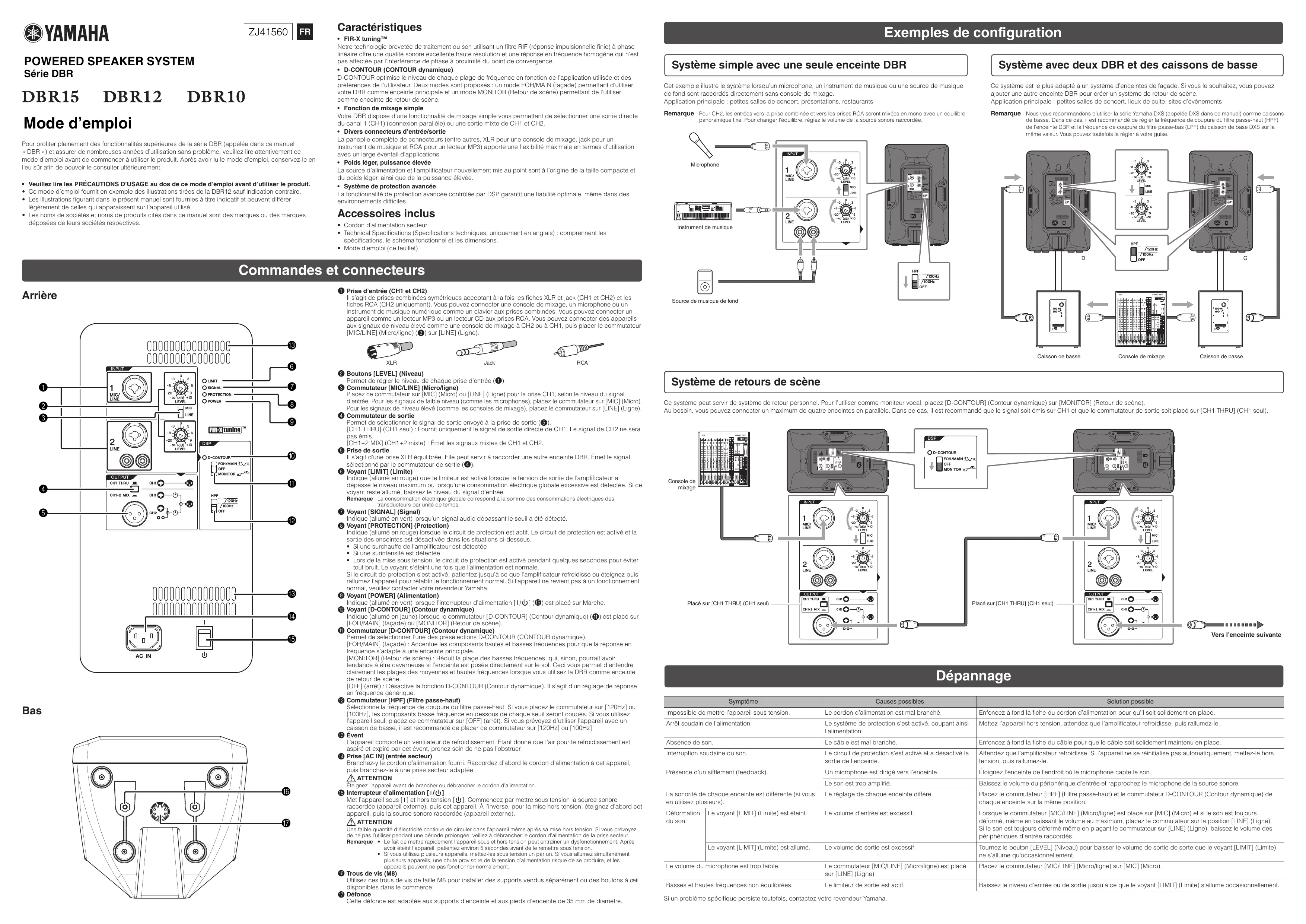DBR15/DBR12/DBR10 - Enceintes amplifiées YAMAHA - Notice d'utilisation et mode d'emploi gratuit