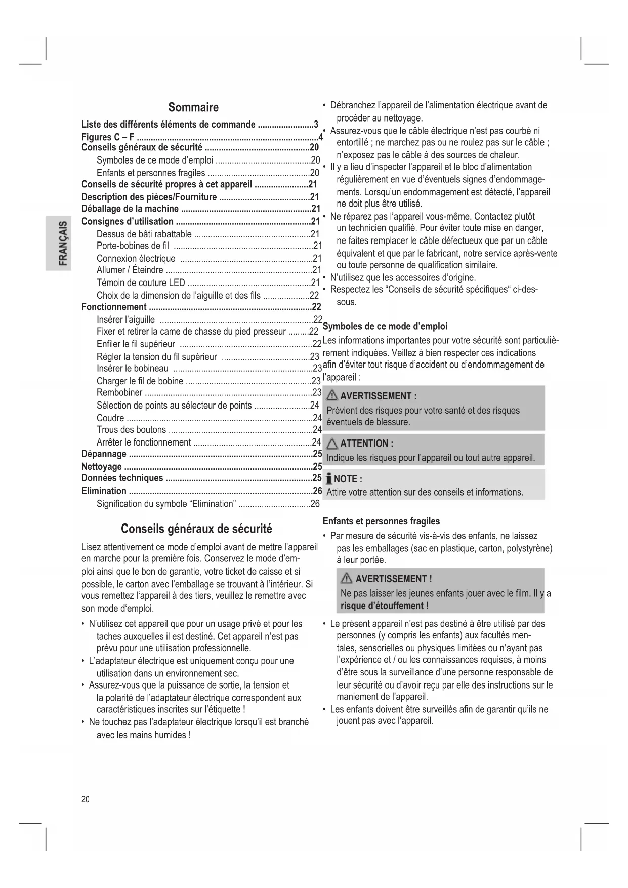 Conseils généraux de sécurité 20