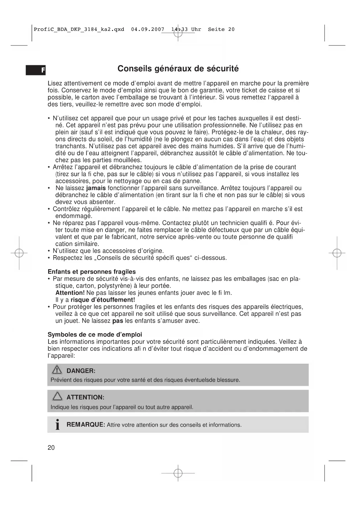 ProfiC_BDA_DKP_3184_ka2.qxd 04.09.2007 14:33 Uhr Seite 26En cas de recours à la garantie, ramenez votre appareil complet, dans son emballage