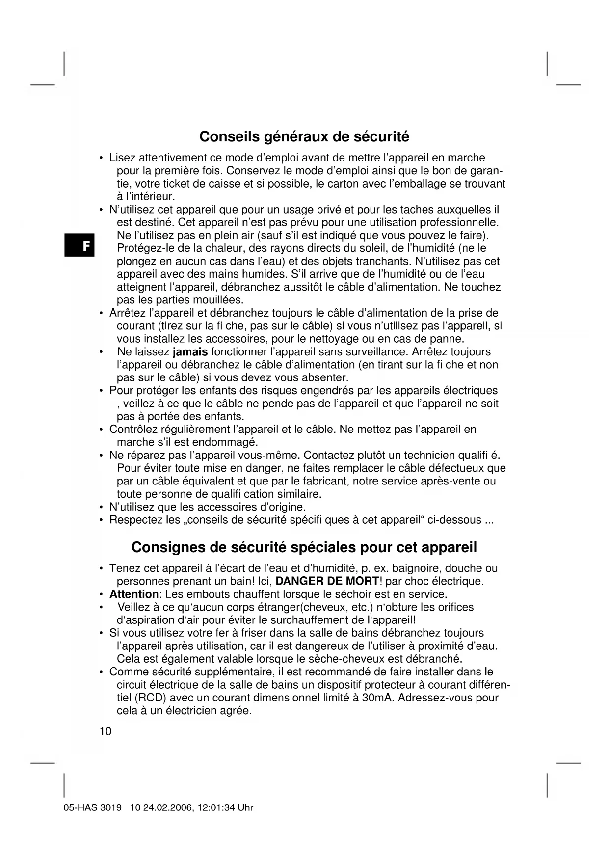 • Respectez les „conseils de sécurité spécifi ques à cet appareil“ ci-dessous ...