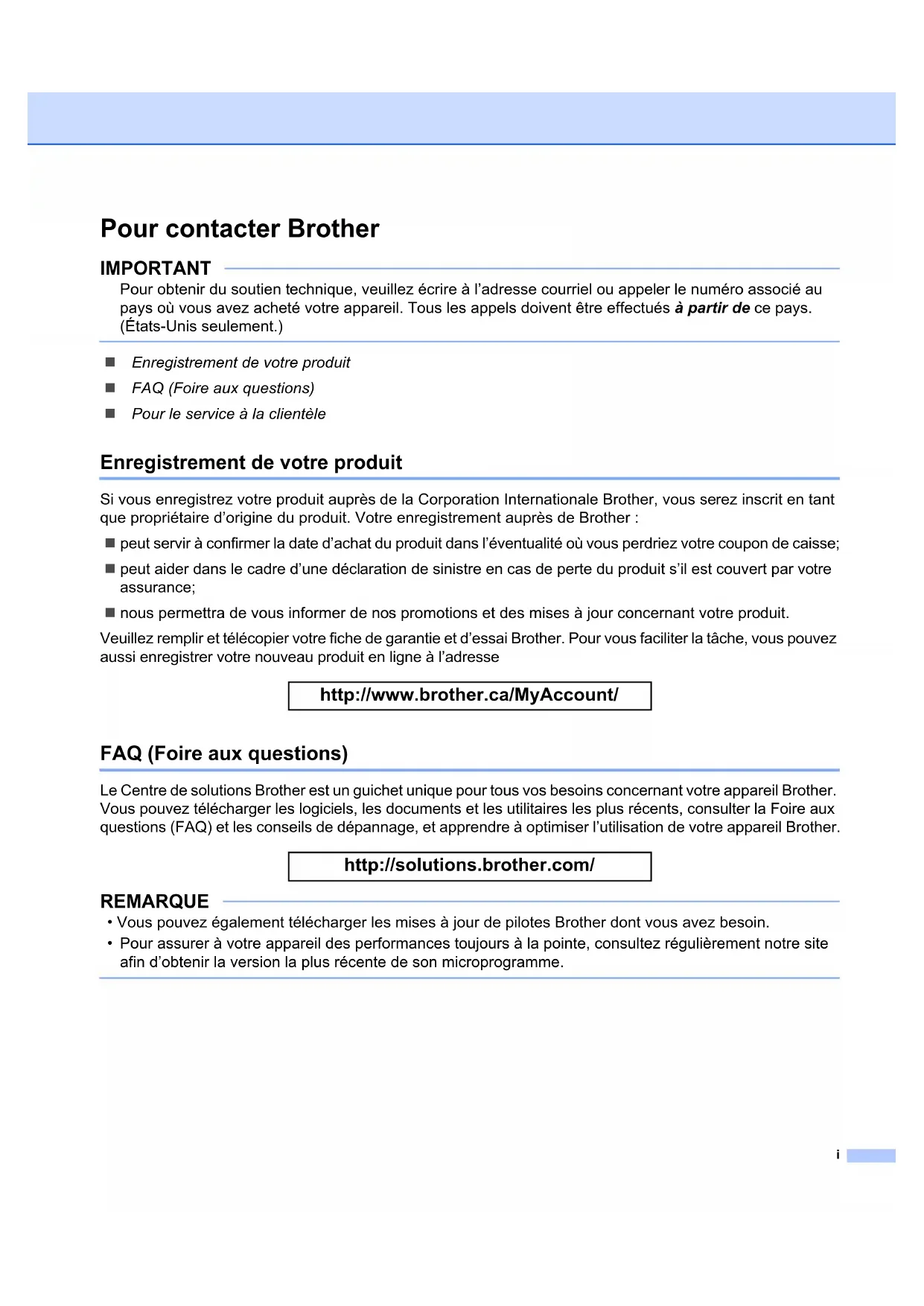 Pour contacter Brother