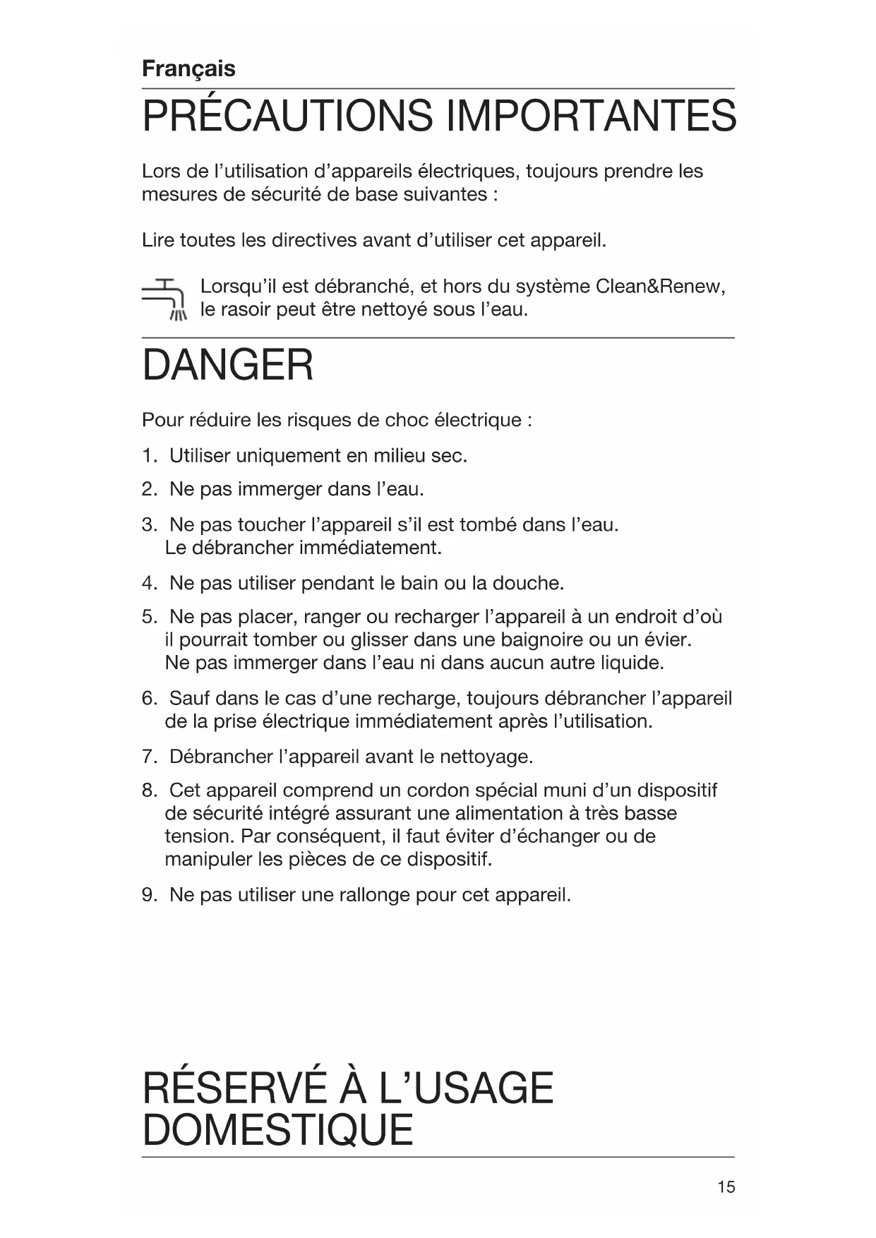 | Sécurité | Système de protection contre les surcharges, utilisation sur peau humide ou sèche, ne pas utiliser sous la douche. |