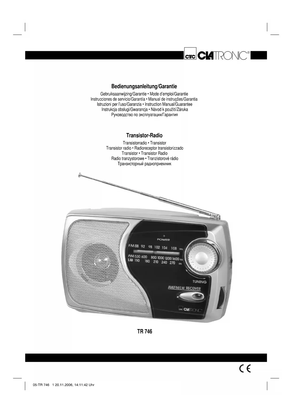 Retrouvez gratuitement la notice de l'appareil TR 746 CLATRONIC au format PDF.