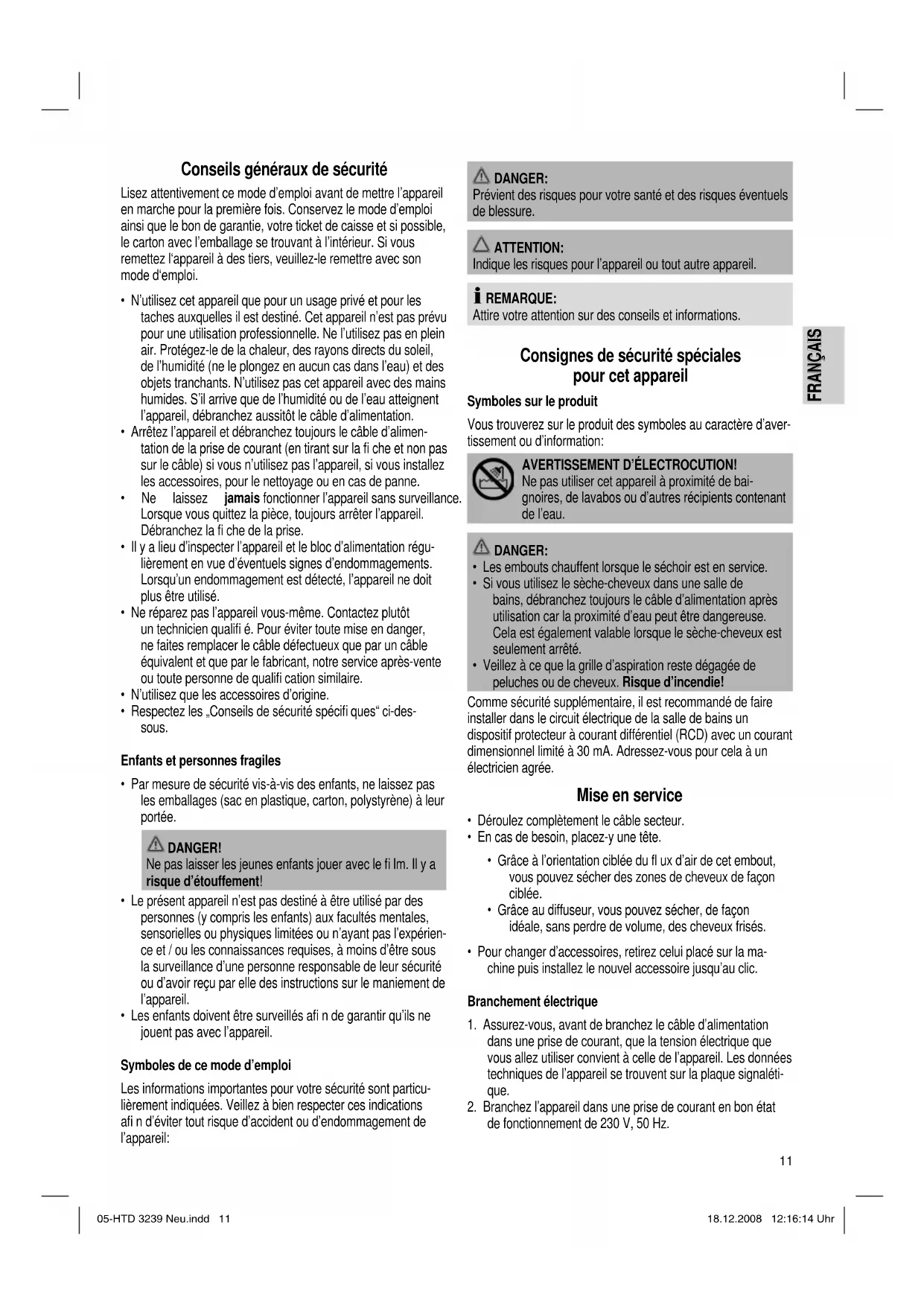 FRANÇAIS FRANÇAIS Conseils généraux de sécurité