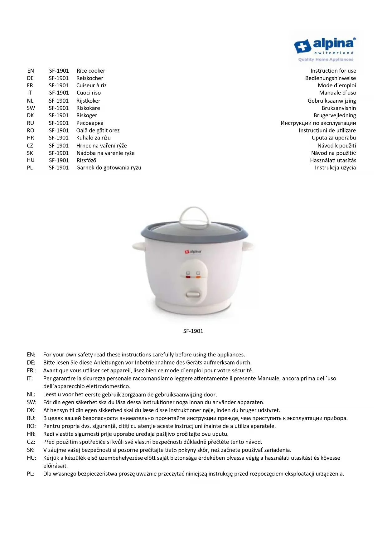 SF 1901 - Cuiseur à riz ALPINA - Notice d'utilisation et mode d'emploi gratuit