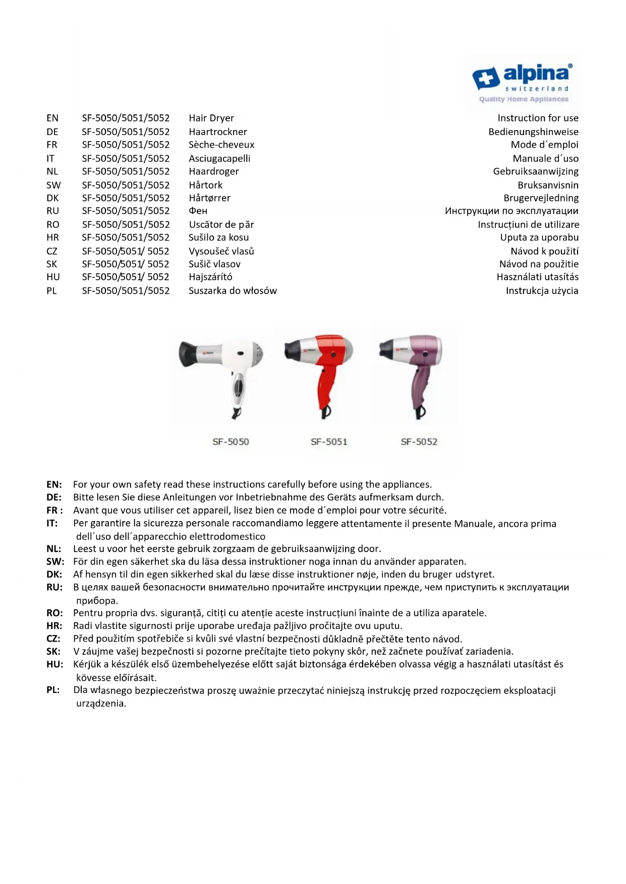 SF 5052 Swissmiss - Sèche cheveux ALPINA - Notice d'utilisation et mode d'emploi gratuit