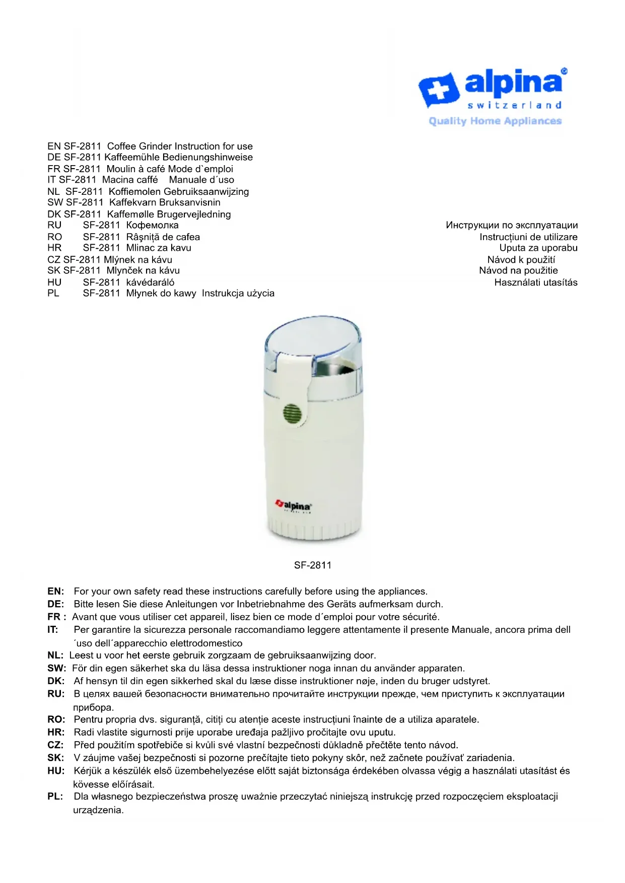 Retrouvez gratuitement la notice de l'appareil SF2811 ALPINA au format PDF.