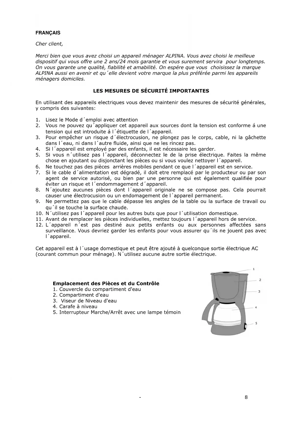 SF2806 - Machine à café ALPINA - Notice d'utilisation et mode d'emploi gratuit