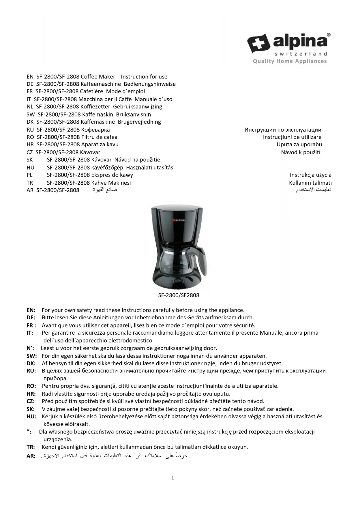 Retrouvez gratuitement la notice de l'appareil SF2808 ALPINA au format PDF.