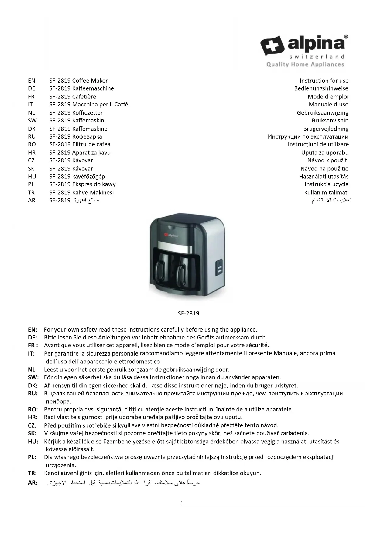 Retrouvez gratuitement la notice de l'appareil SF2819 ALPINA au format PDF.