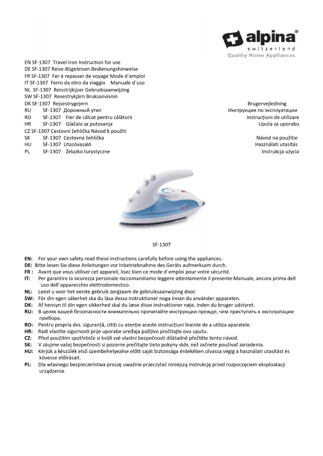 Retrouvez gratuitement la notice de l'appareil SF1307 ALPINA au format PDF.