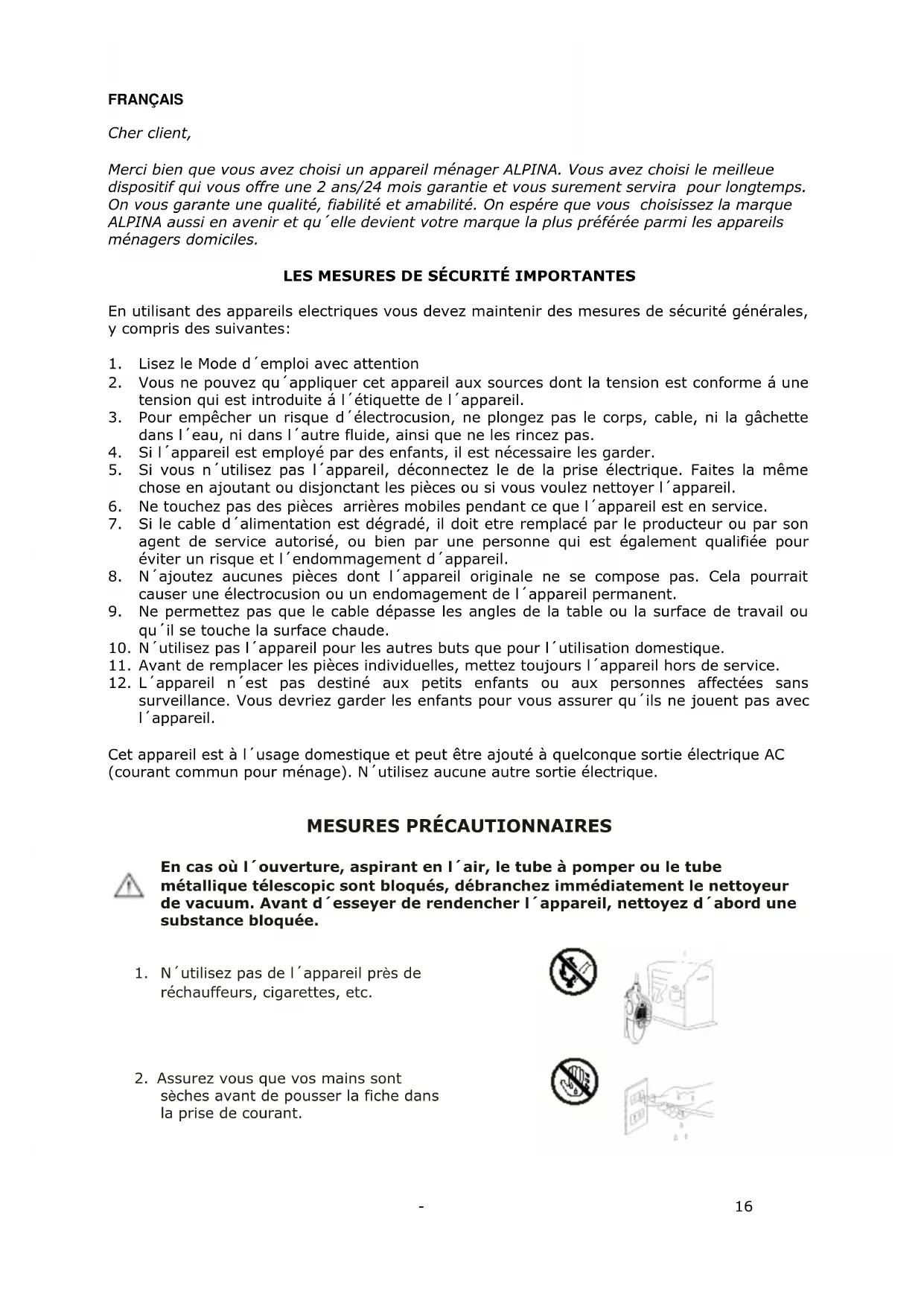 SF 2206 - Aspirateur ALPINA - Notice d'utilisation et mode d'emploi gratuit