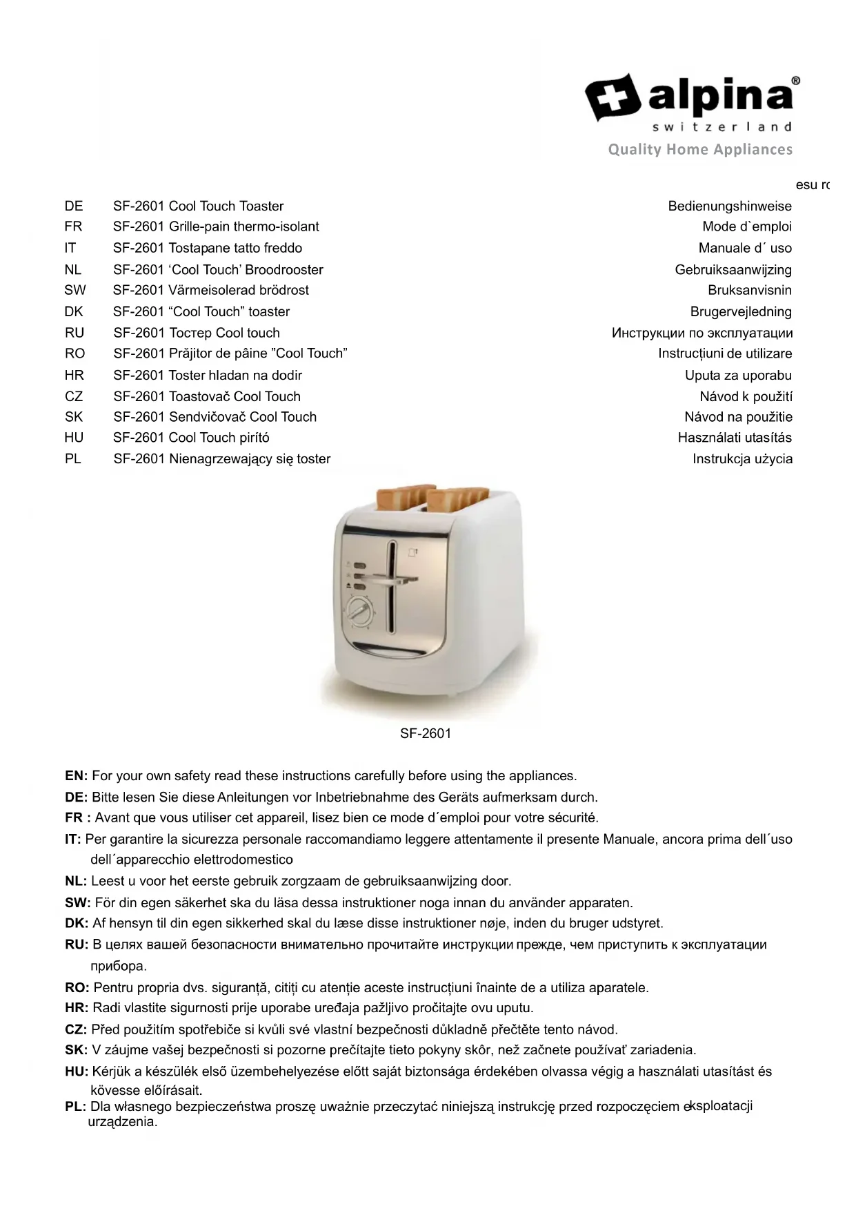 Retrouvez gratuitement la notice de l'appareil SF 2601 ALPINA au format PDF.