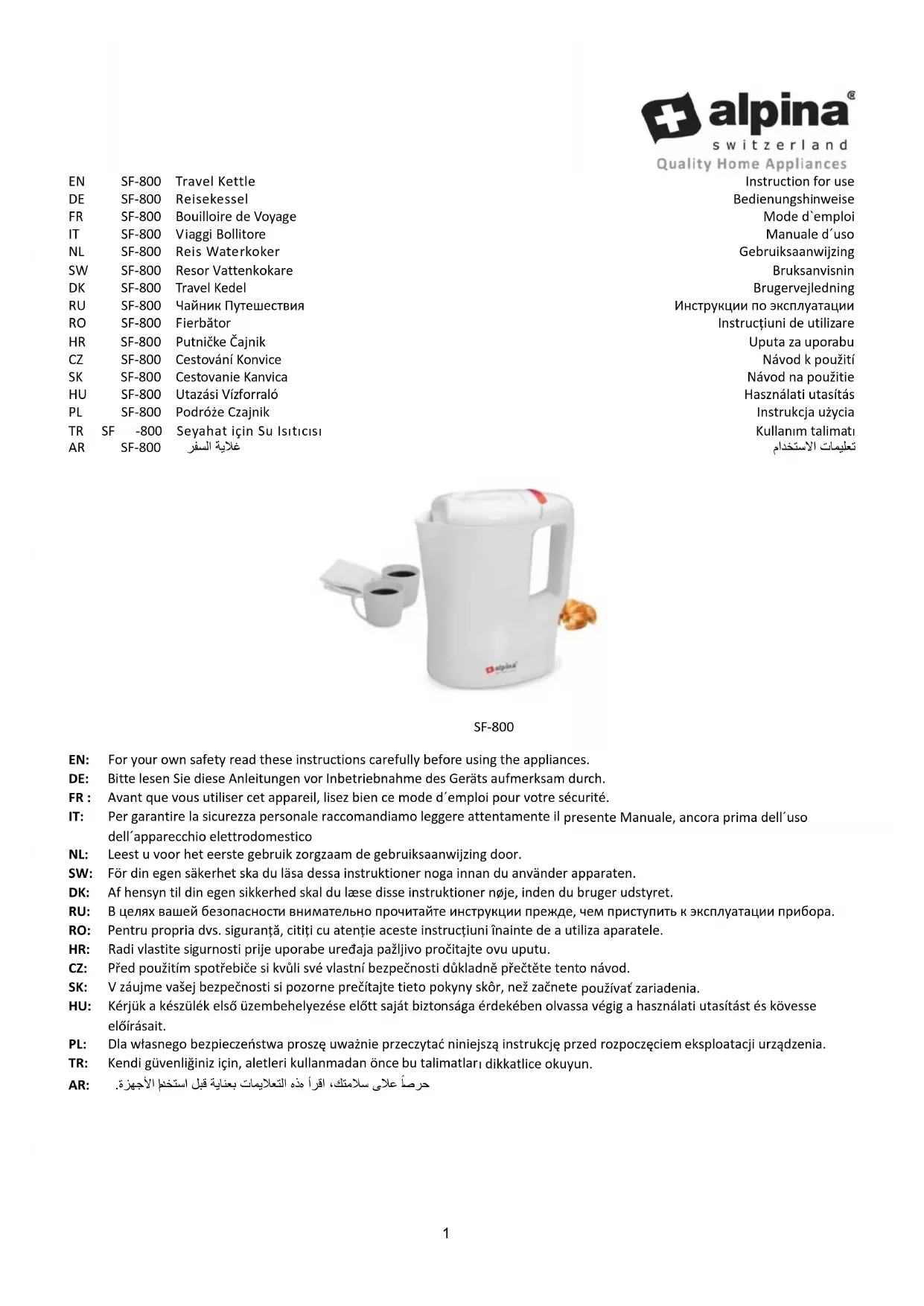 Retrouvez gratuitement la notice de l'appareil SF 800 ALPINA au format PDF.