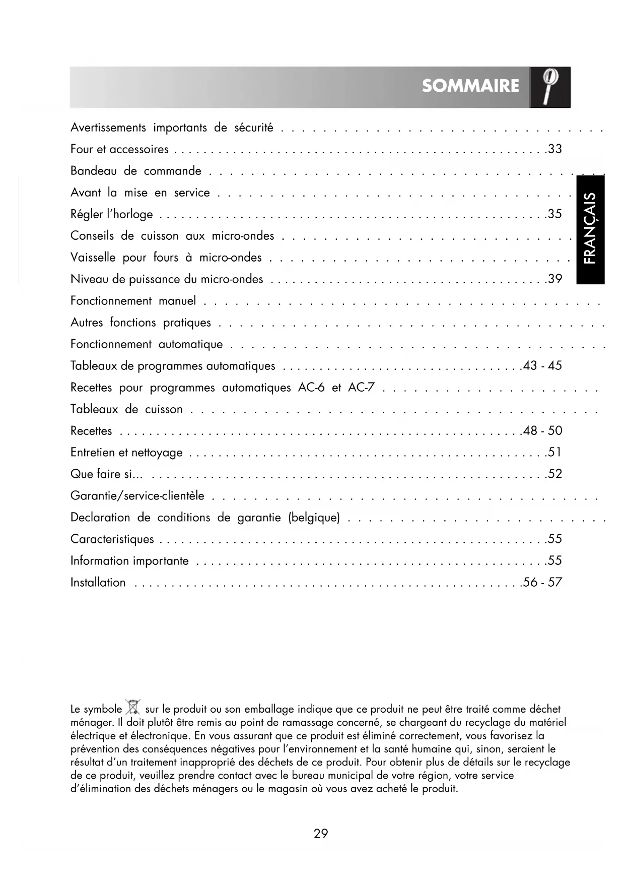 Ce four est conforme aux exigences des Directives 2004/108/EC et 2006/95/EC.