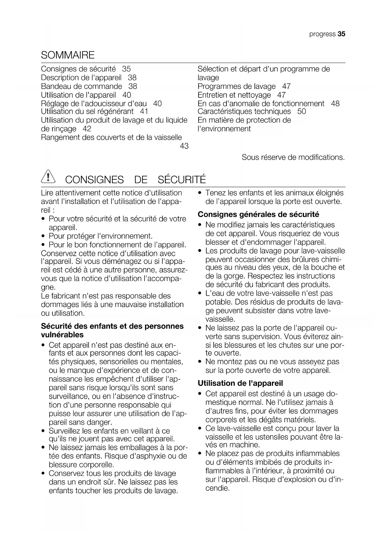 - L'eau de votre lave-vaisselle n'est pas potable. Des résidus de produits de lavage peuvent subsister dans votre lave-vaisselle.