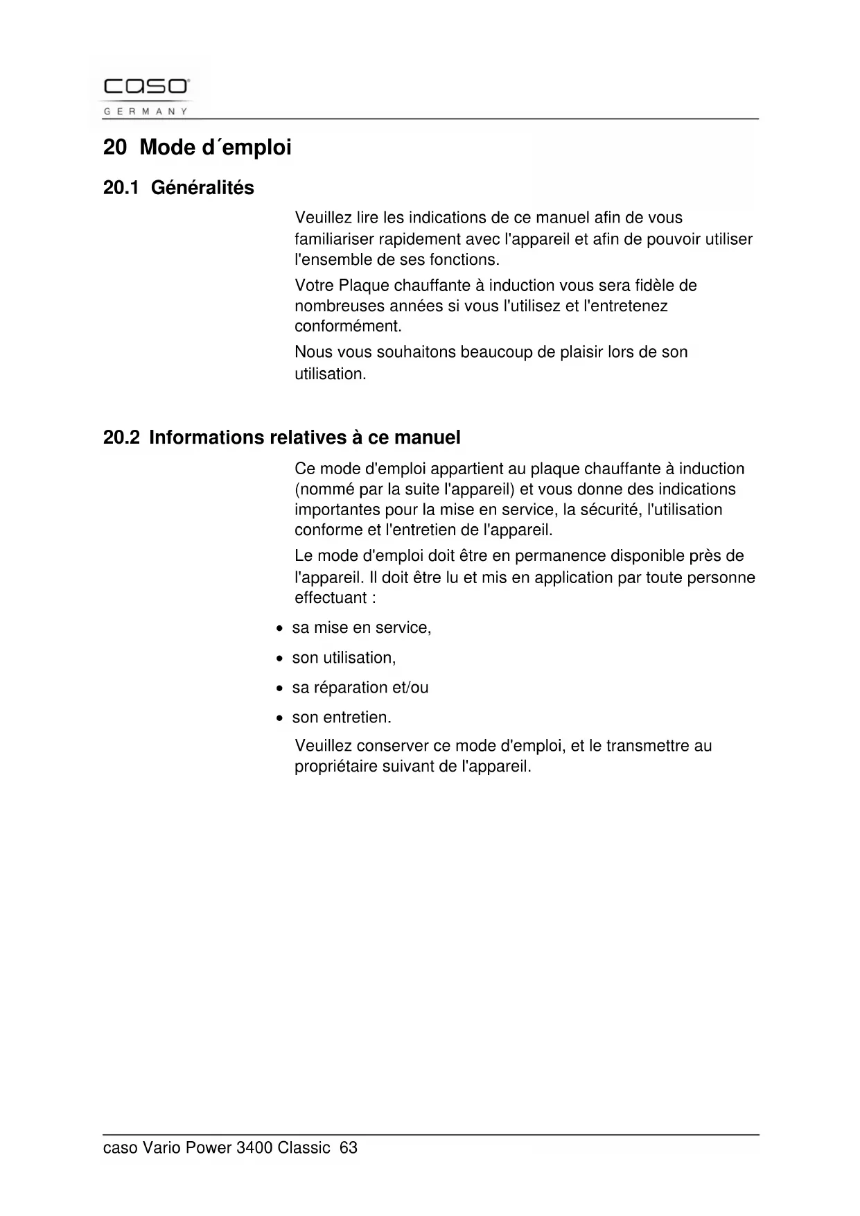 Vario Power 3400 - Cuisinière CASO - Notice d'utilisation et mode d'emploi gratuit