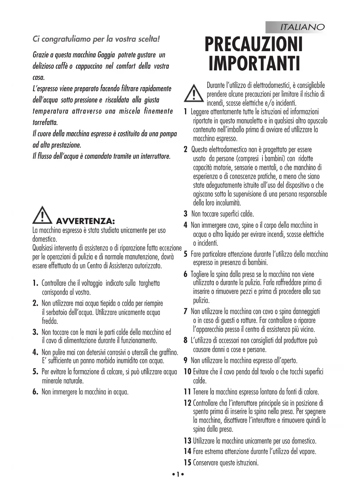 Retrouvez gratuitement la notice de l'appareil Espresso Dose GAGGIA au format PDF.
