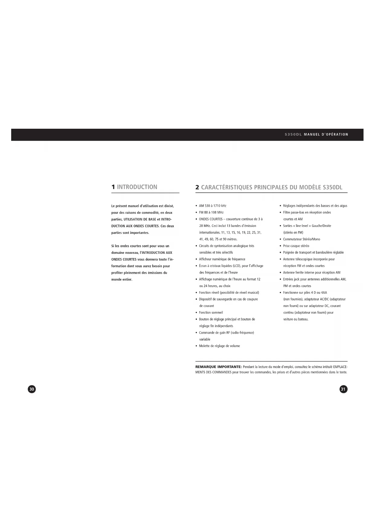 Le présent manuel d'utilisation est divisé, pour des raisons de commodité, en deux parties, UTILISATION DE BASE et INTRODUCTION AUX ONDES COURTES. Ces deux parties sont importantes.
