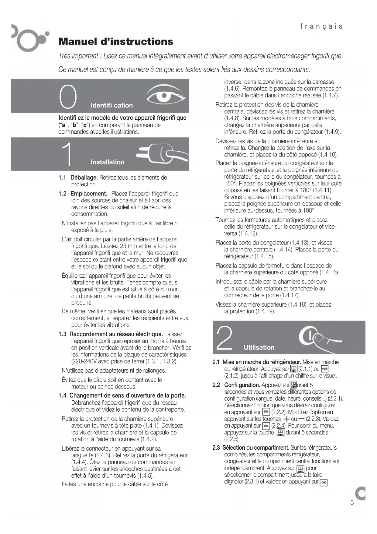 1.4 Changement de sens d’ouverture de la porte.