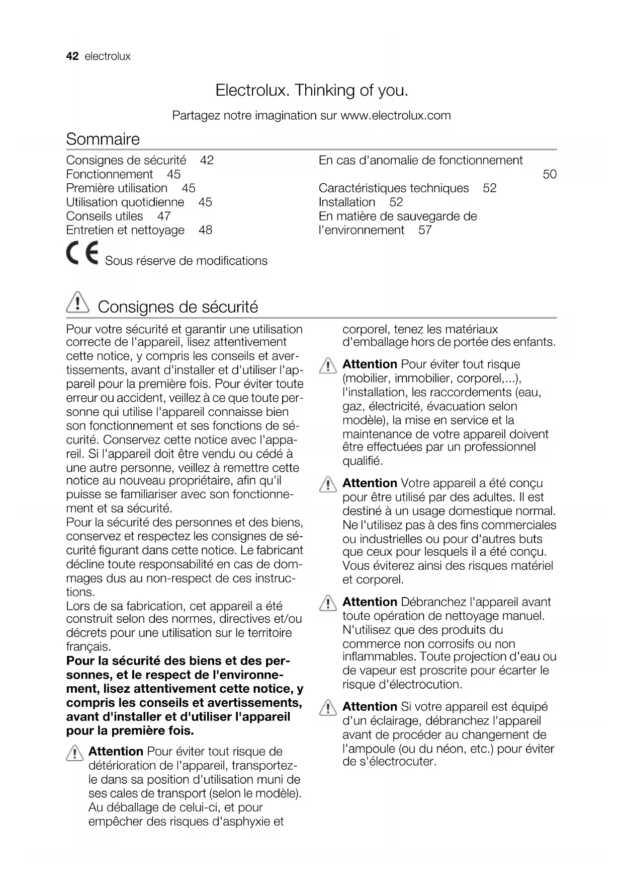 42 electroluxAttention Afin d'empêcher des risques