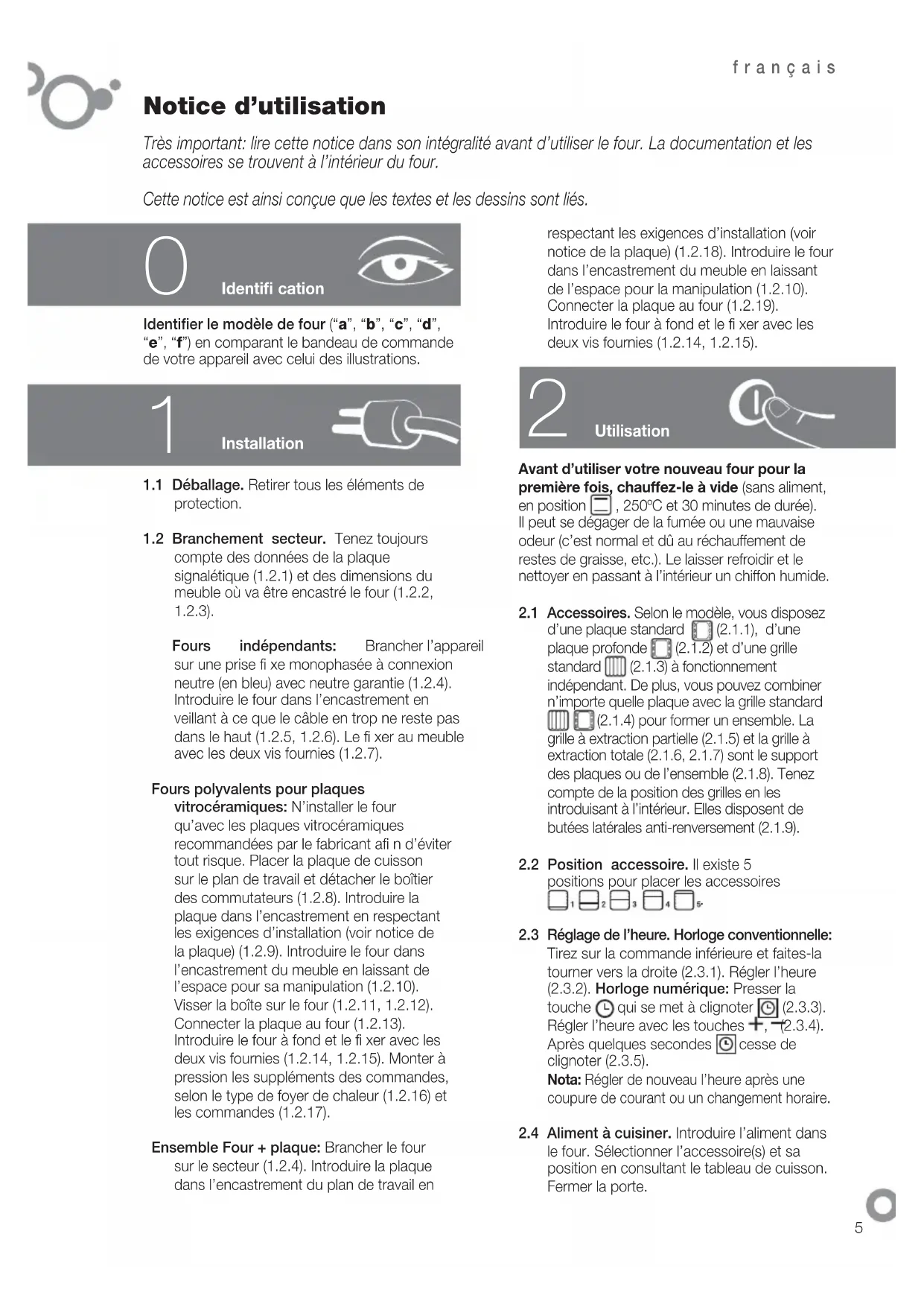 Très important: lire cette notice dans son intégralité avant d’utiliser le four. La documentation et les