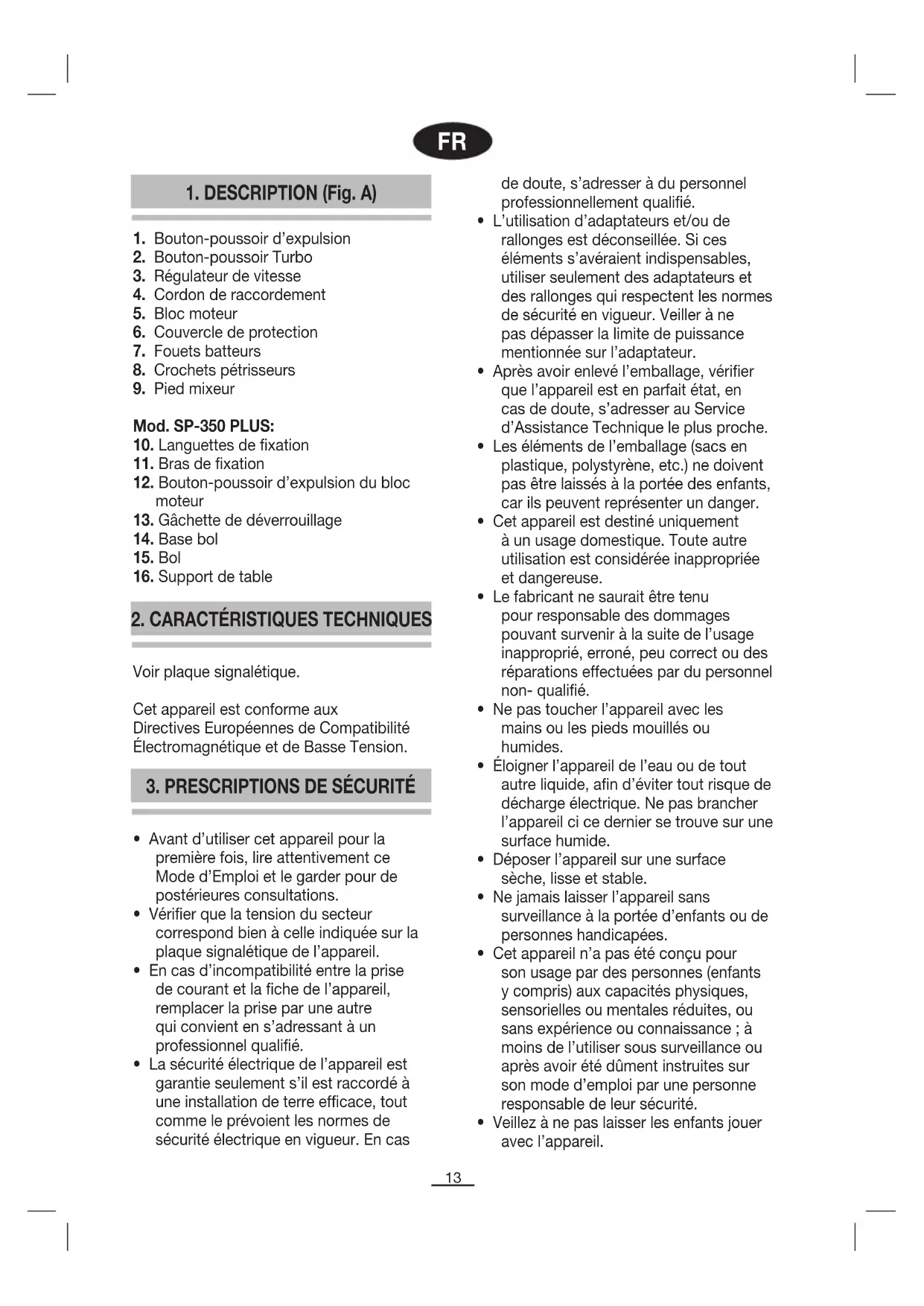 SP350 - Mixeur plongeant FAGOR - Notice d'utilisation et mode d'emploi gratuit