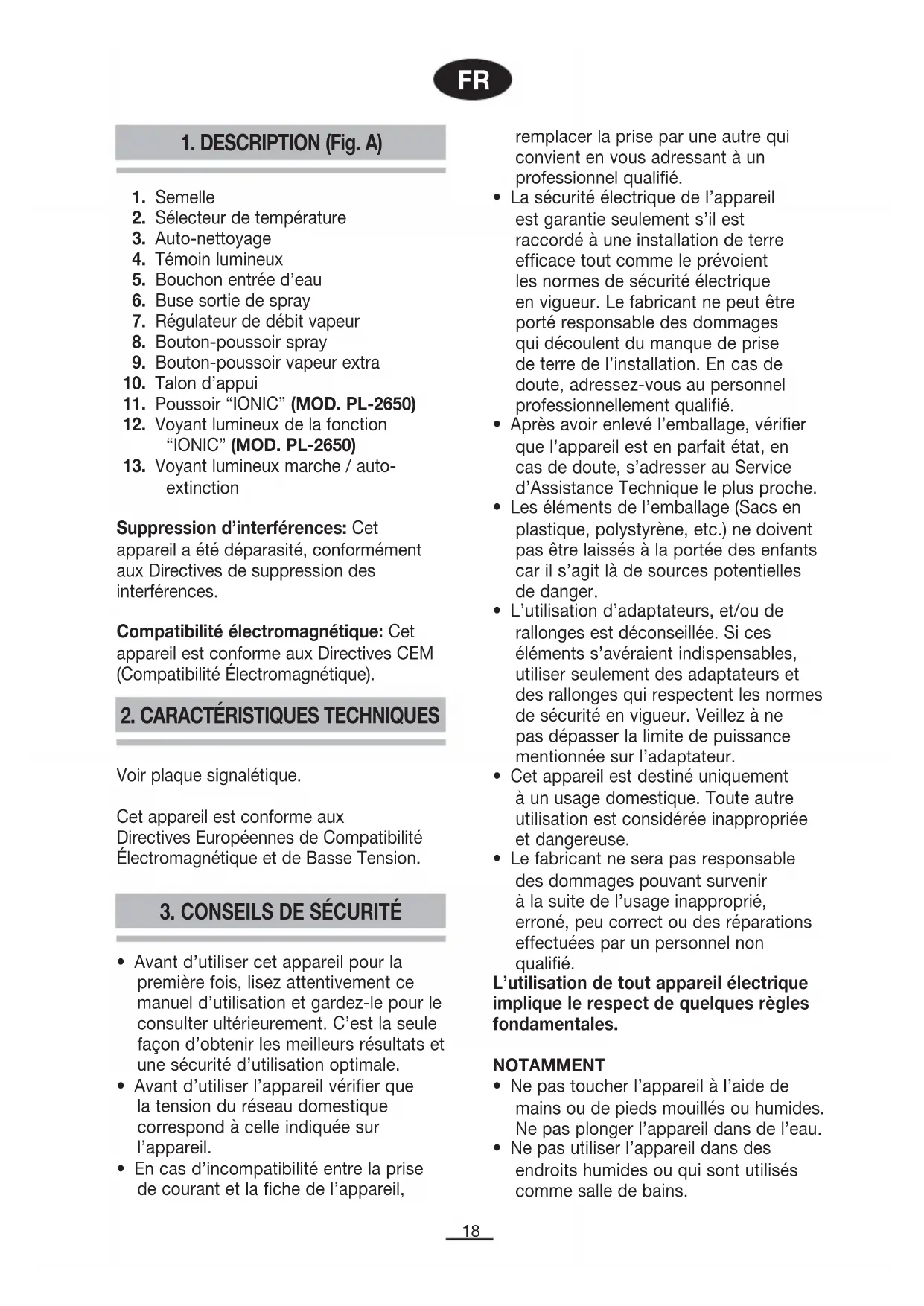 2. CARACTÉRISTIQUES TECHNIQUES FR Voir plaque signalétique.