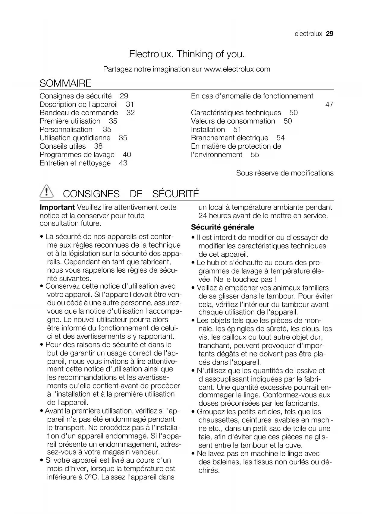 SOMMAIRE Consignes de sécurité 29