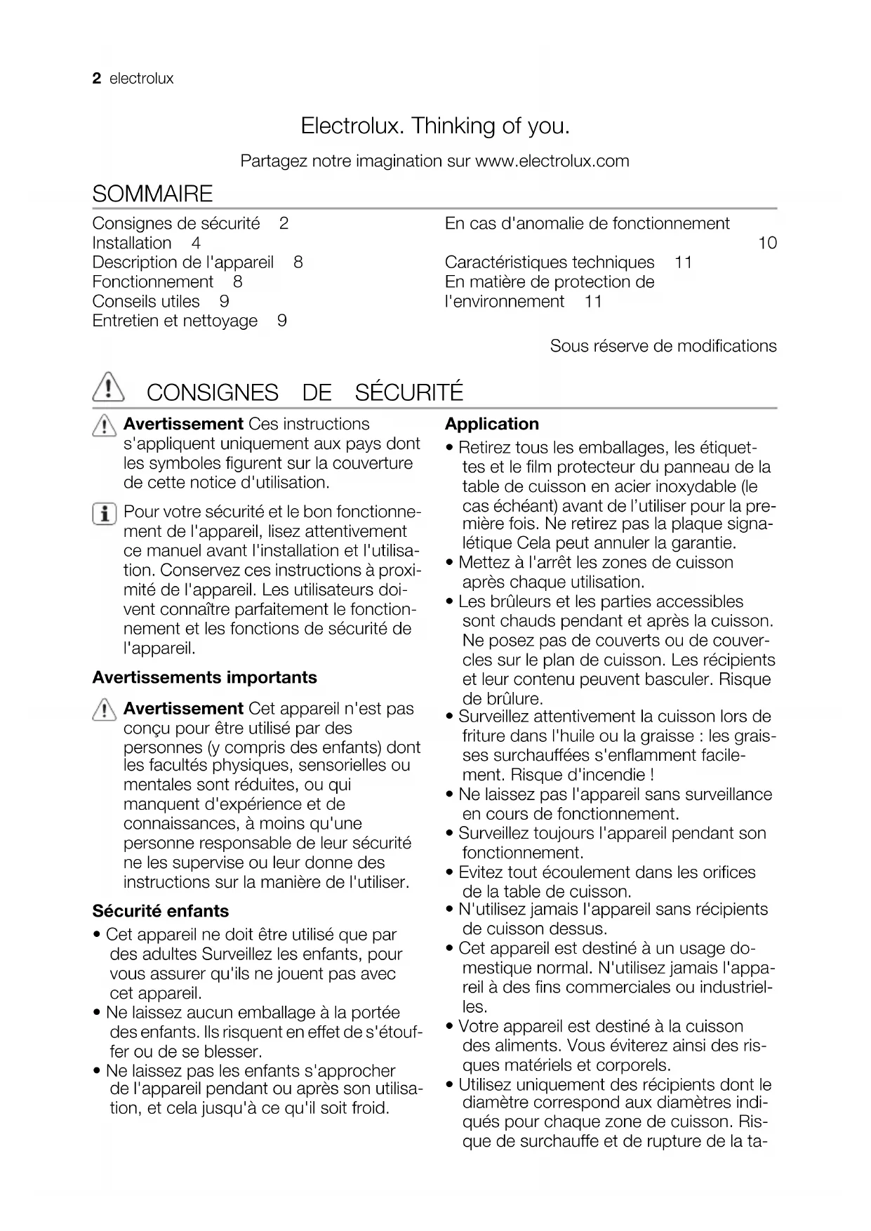Retrouvez gratuitement la notice de l'appareil EHT60415K ELECTROLUX au format PDF.