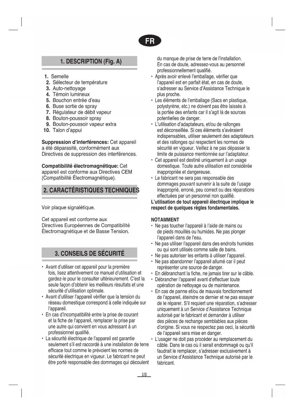 2. CARACTÉRISTIQUES TECHNIQUES FR Voir plaque signalétique.