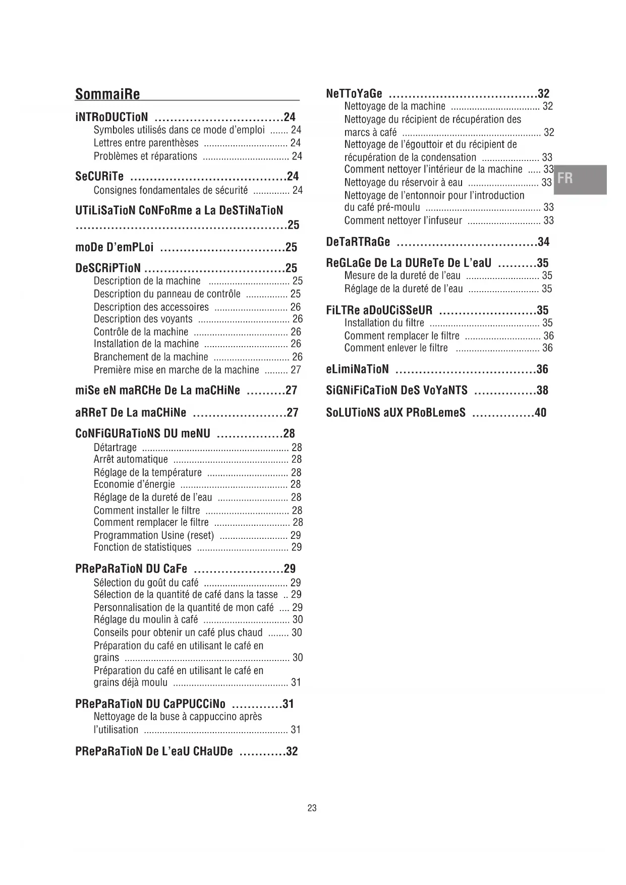Réglage du moulin à café ��������������������������������� 30